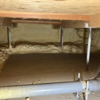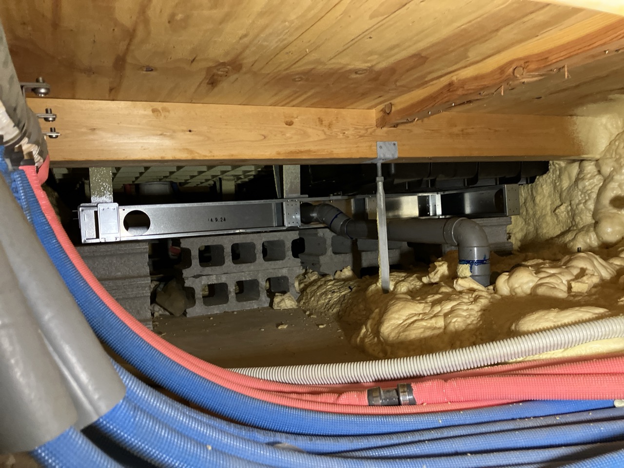 床下のチェック。この頃は10年後に自分が床下に潜って点検するなど全く想定していない時期でしたので給排水管が通りにくい場所に配されていて、移動するのに非常に難儀しました。