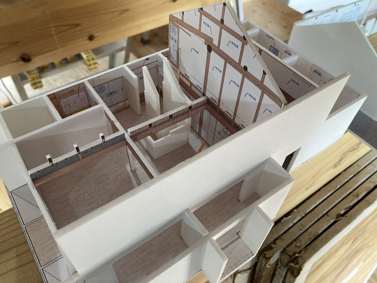先日のミノワ会(協力業者さんとの勉強会)で、久しぶりにお会いしたi井棟梁に、冗談で「現場にちっとも来ないね~」と言われ、早速お邪魔してきました。am様もブログ等にご協力いただけるとの事で、遅ればせながら、本日からスタートいたします。am様邸は、ご親戚の設計士さんが設計監理され、古民家の改修と新築工事をさせていただきます。こちらは設計事務所ならではの模型👍めっきり3D-CADに慣れてしまいましたが、模型も解り易くてジオラマみたいで可愛いし、あたたかい感じがいいですね。