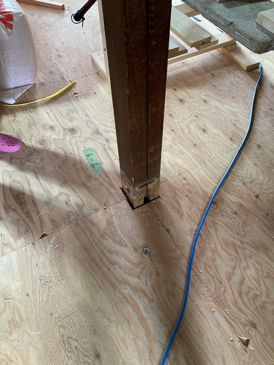 新築では見たことの無い金物が沢山。設計士さんが、社寺建築の改修を多く手掛ける設計事務所さんに補強の仕方を相談されたそうです。となると、土間の下も気になりますね。