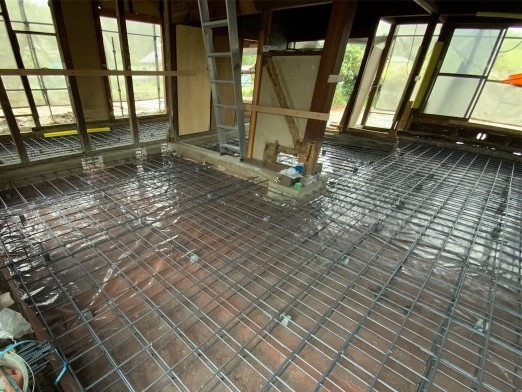防湿シートにダブル配筋。新築さながら、いや以上?の工事を行っています。すごい!