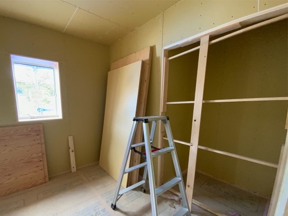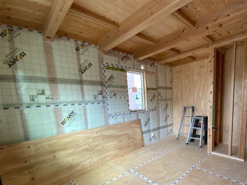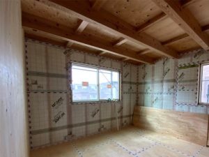 2階はプラスターボードを張り終えています。あとは、仕上げ工事を待つのみです。