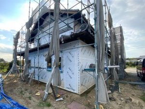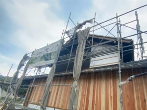 内部の造作工事は完了し、外壁の改修に取り掛かりました。