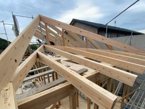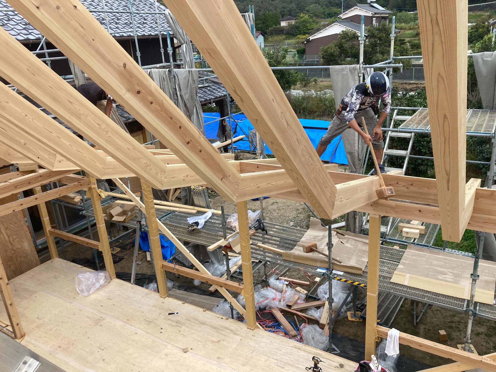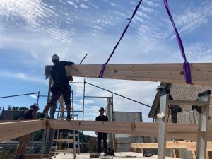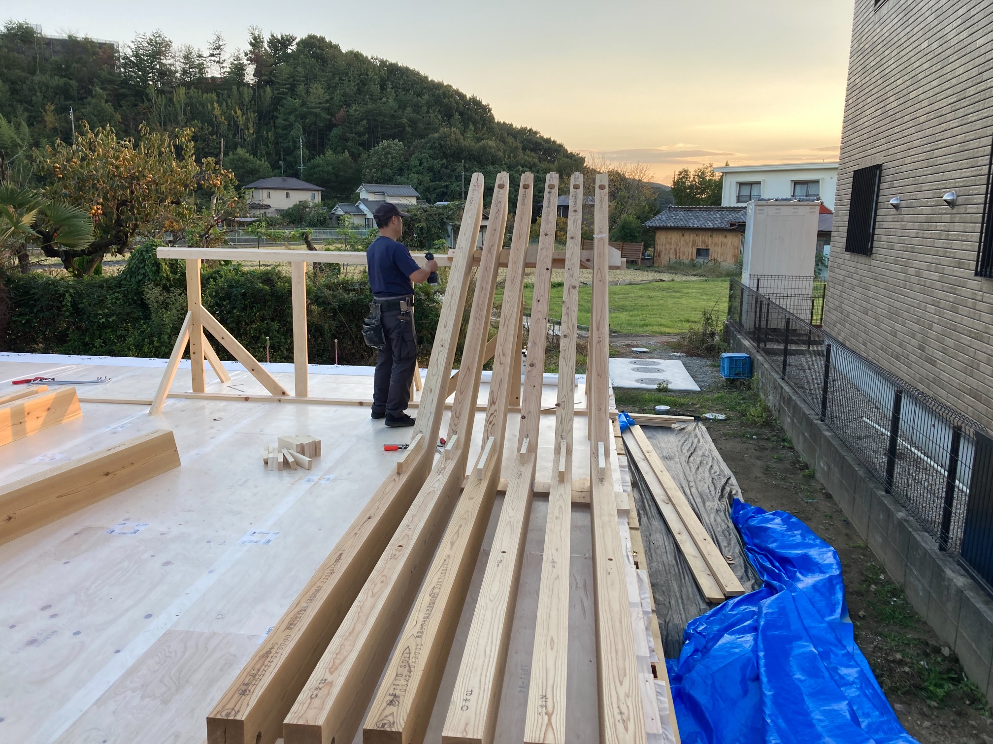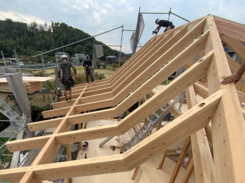 昨日、新築棟の上棟が行われました。天気予報に反して、朝から秋晴れの良いお天気👍夕方からすこし雨がチラつきましたが、その頃には屋根の合板も伏せ終わり、しっかり養生されていたようです。