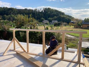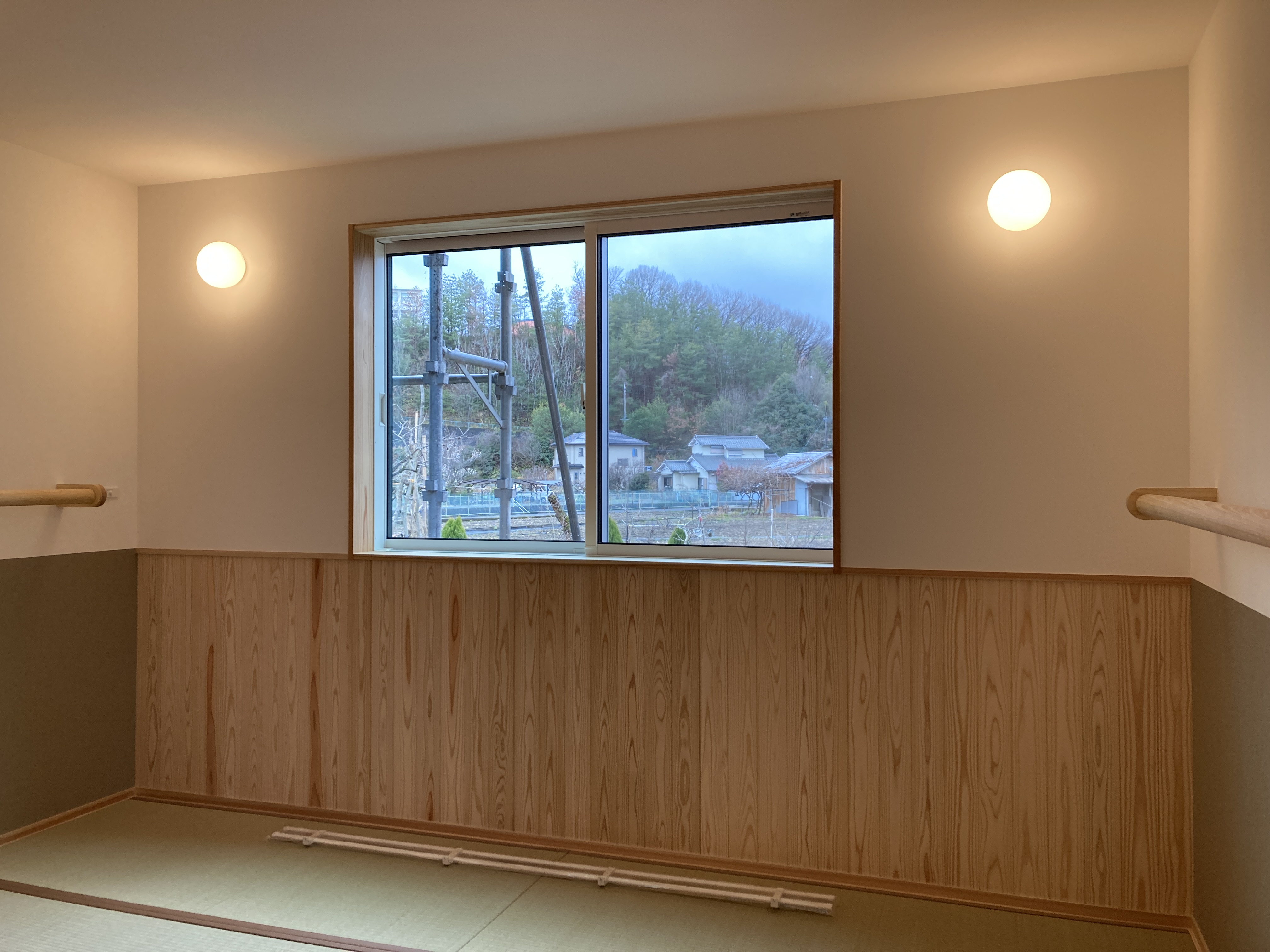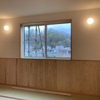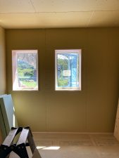 k田君は、子供部屋の出入口枠を取り付けています。子供部屋の窓からは良い景色が眺められます。
