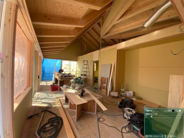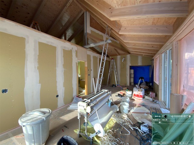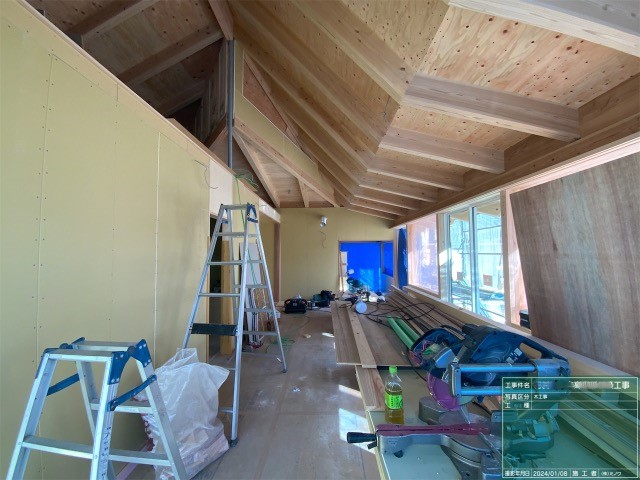 改修棟も、施主様の年回りの関係で急遽ご入居を急ぐ事となり、こちらも急ピッチに内装工事が進められています。