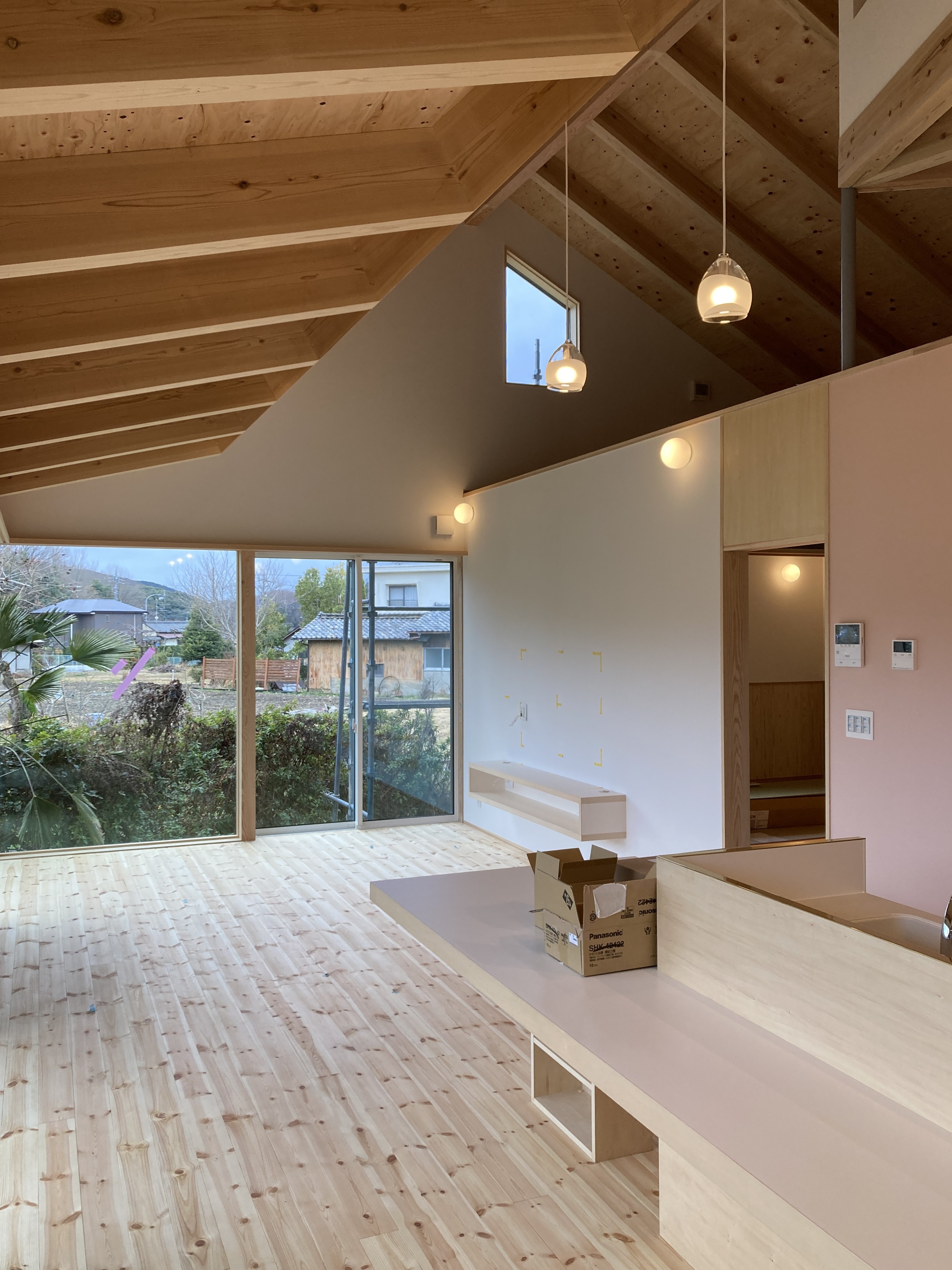 外観は、焼杉と杉板押し縁張り、サイディングにピンクの塗装だけと思っていたら、緑色の塗壁、ガルバ鋼板、既存の黒漆喰のままの部分といろんな壁の仕上げがあり、外壁の色は2色くらいで抑えようと言うセオリーはもう古いのね~などと思いながら、いろいろ刺激になります。せっかく設計士さんがみえたのに、構造の事やUA値はいくつなのかなどいろいろお聞きすればよかった~💦いつものミノワ仕様ではない物件はなかなか見れないので、楽しい検査でした👍