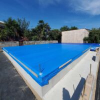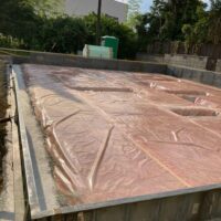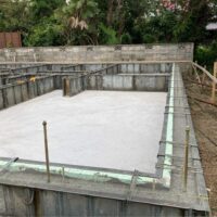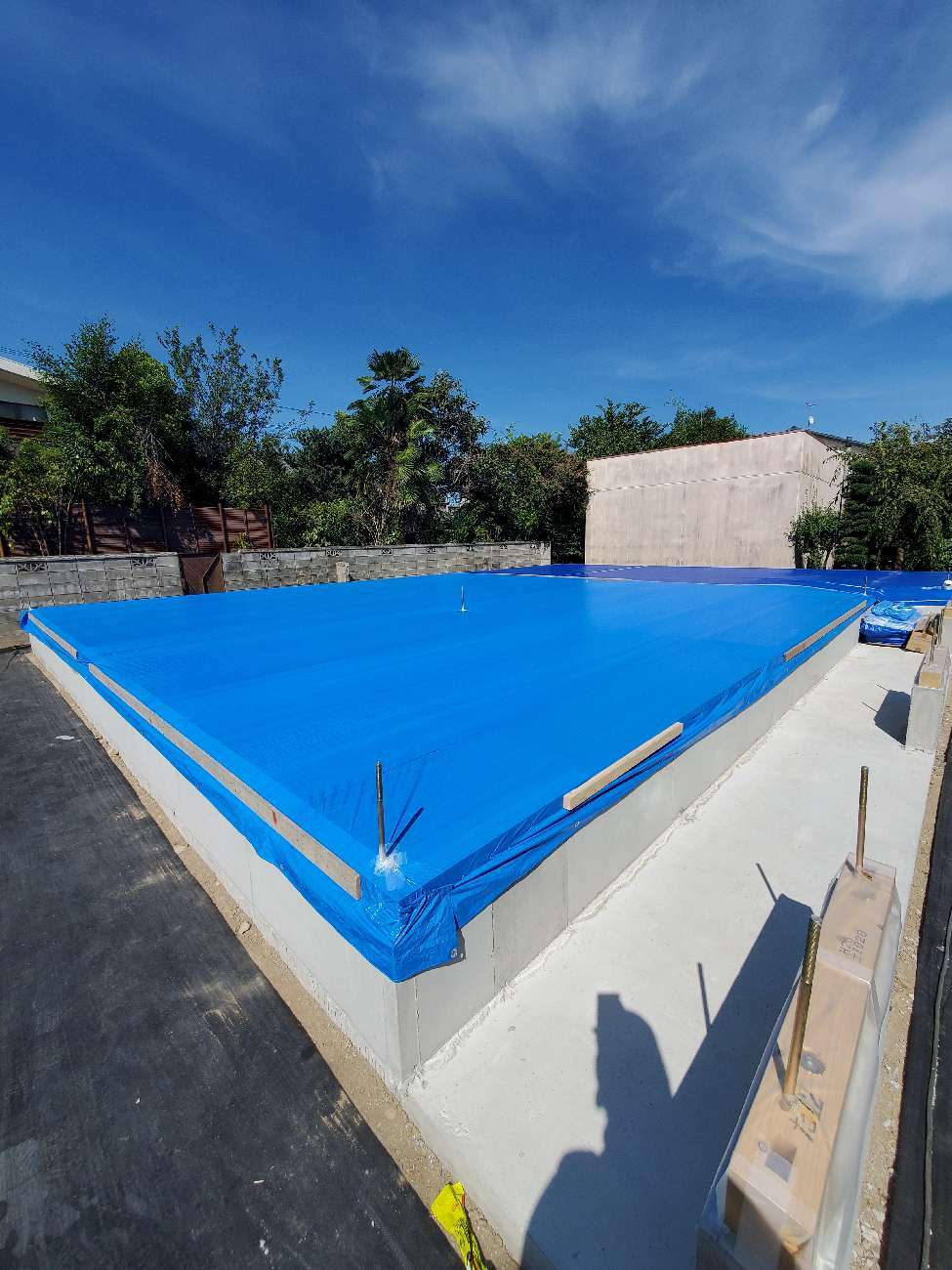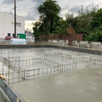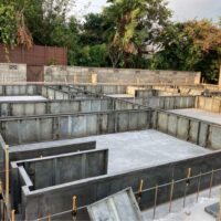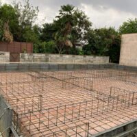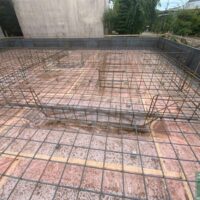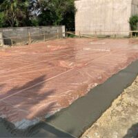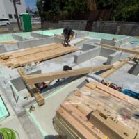 防湿シートを敷き詰め捨てコン打ちをし、外周の型枠を組んでいきます。
