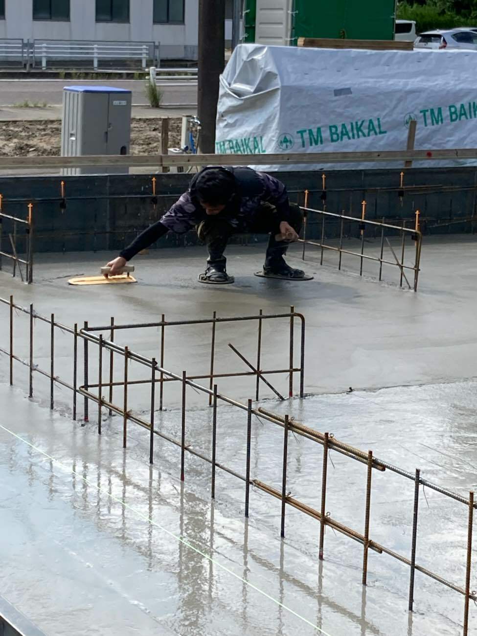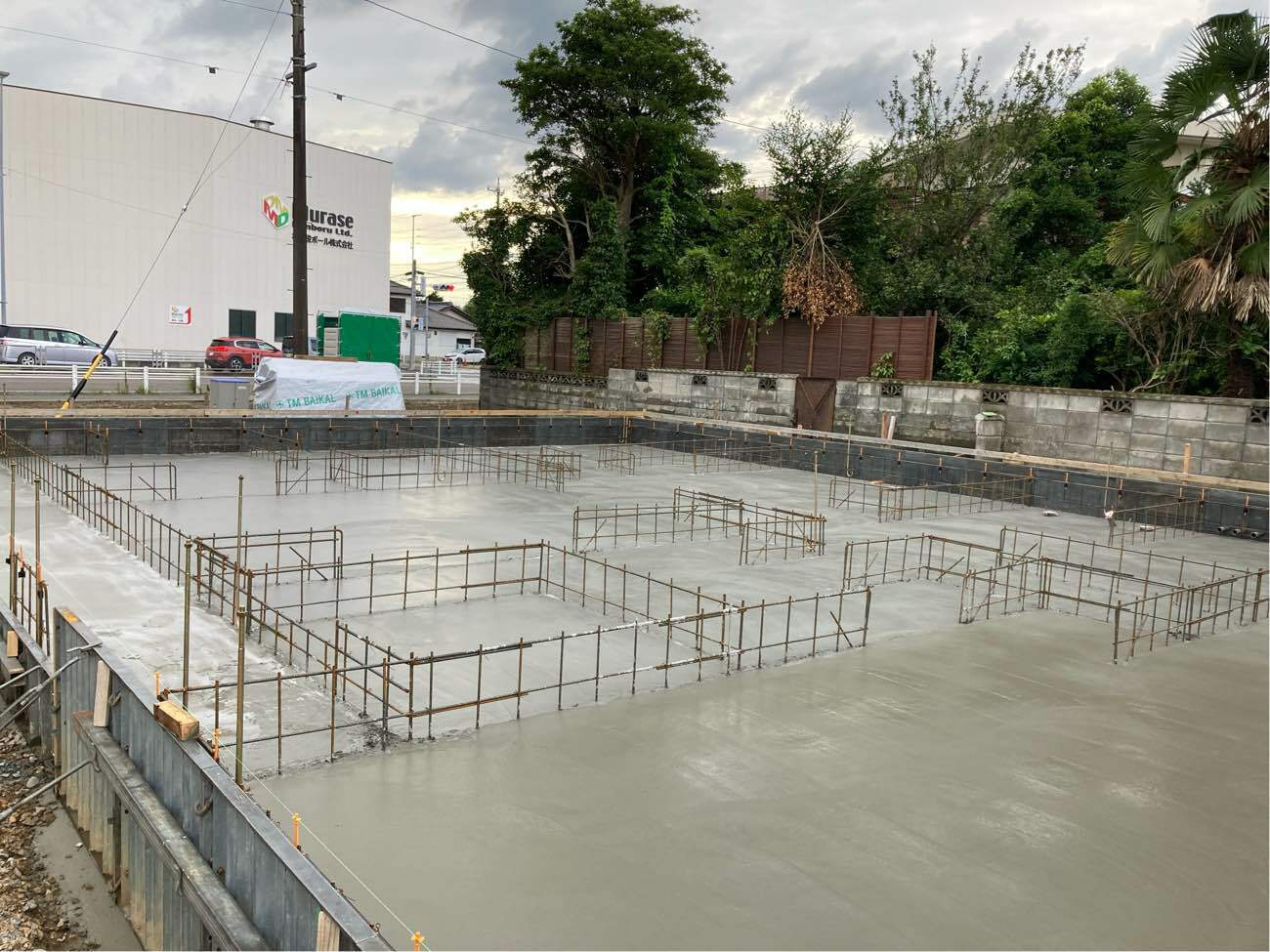 13日に配筋検査を受けましたが、梅雨が最後の悪あがきで雨が降り続き、17日に打設を行いました。17日は、雨の予報から一転して暑い日になりました。