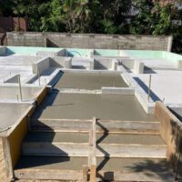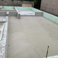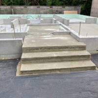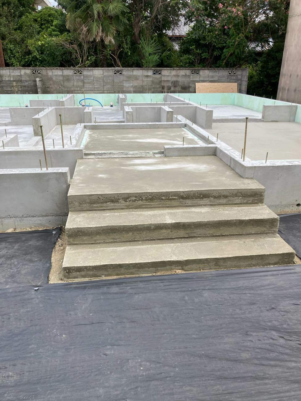 玄関ポーチ、ポーチ階段、玄関内などのコンクリート下地が終わり、基礎部隊のt広さんの仕事が完了しました。