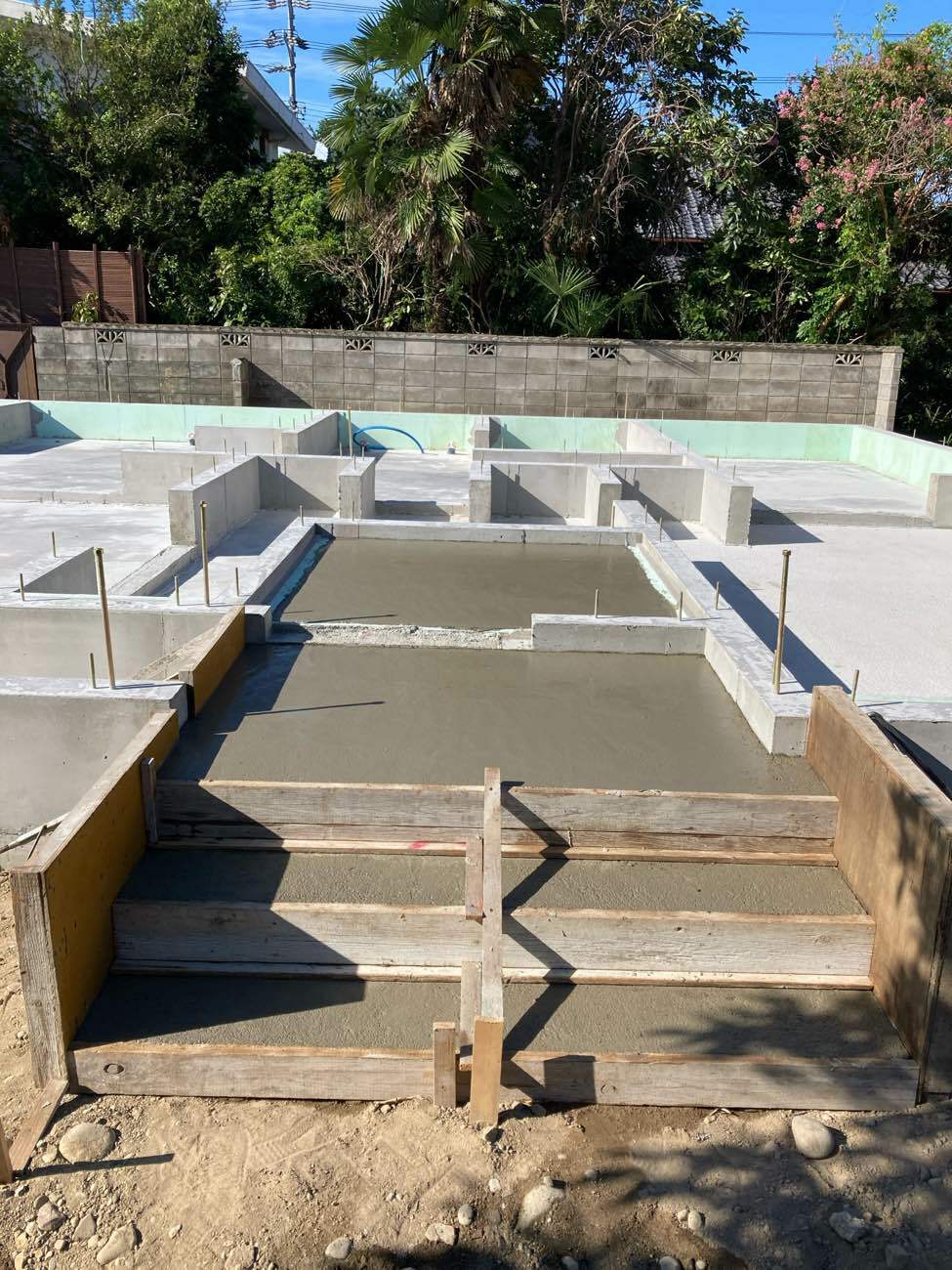 昨日明日と、炎天下の中、型枠を組んでいます。立ち上がりのコンクリート打設は明日です。梅雨が明けたら、35度超えの暑い日が続いていますが、8月5日の上棟に向けて、t広さんが頑張っています👍日陰が無い大変な作業です💦お疲れ様です。こまめに休憩と水分、塩分を摂って、無理せずに作業をお願いいたします。