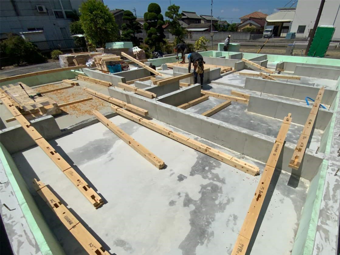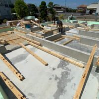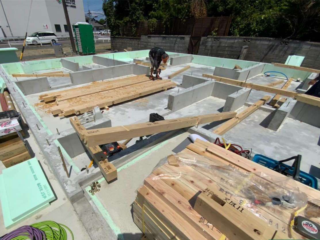 来週5日月曜日の上棟に向けて、s井棟梁、k保木大工さん、h谷川大工さんが、土台伏せを行いました。少し湿度が下がったので、体感温度が下がりましたが、まだまだ灼熱地獄💦暑い中、お疲れ様でした。上棟日はなんとか、程よく湿気が無く日差しも程ほどになってくれることを願いたいと思います!