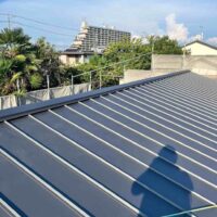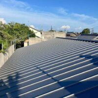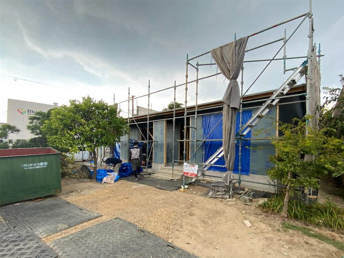 外部は、屋根の板金工事が完了(📸y江板金さん)し、外壁は透湿防水シートを張りました。