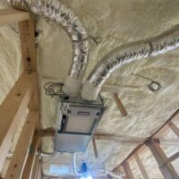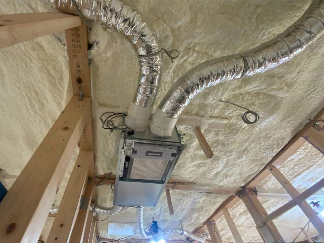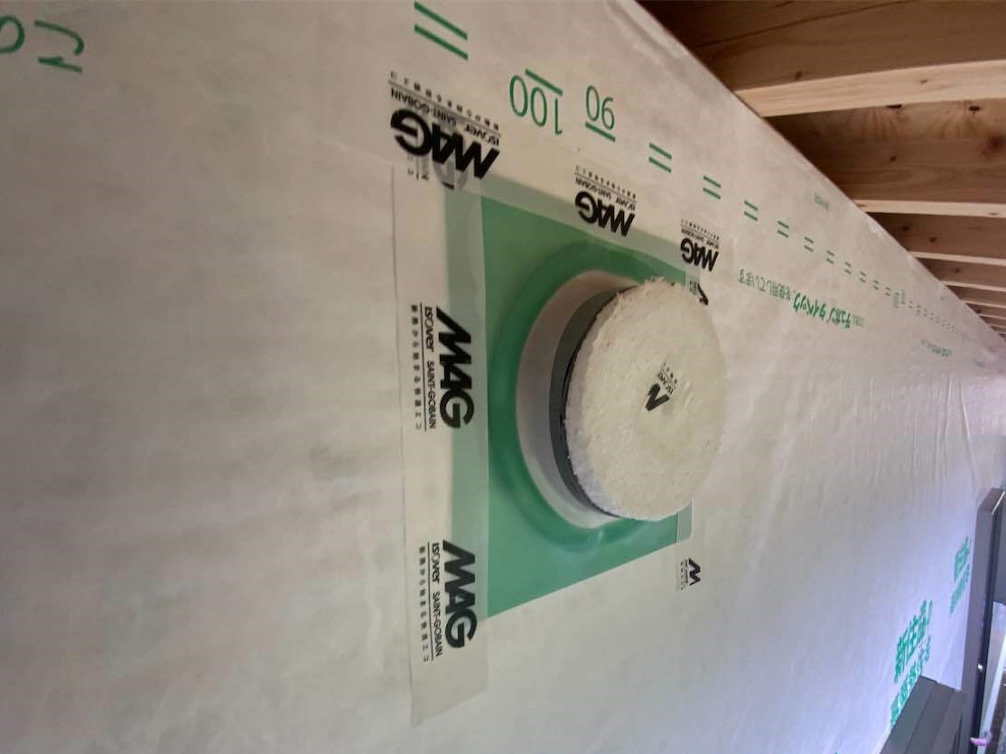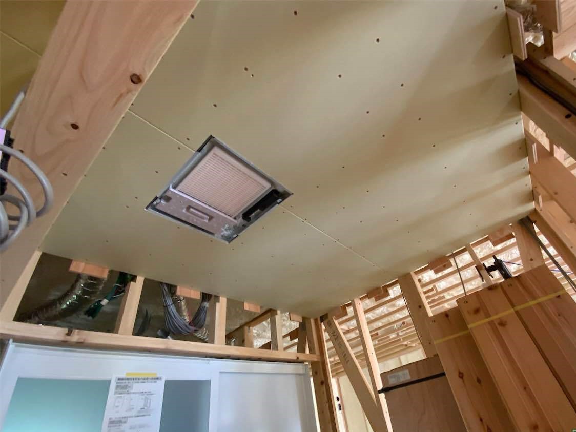 断熱材が施されたので、その下(室内側)に、熱交換器とダクトを施工しました。