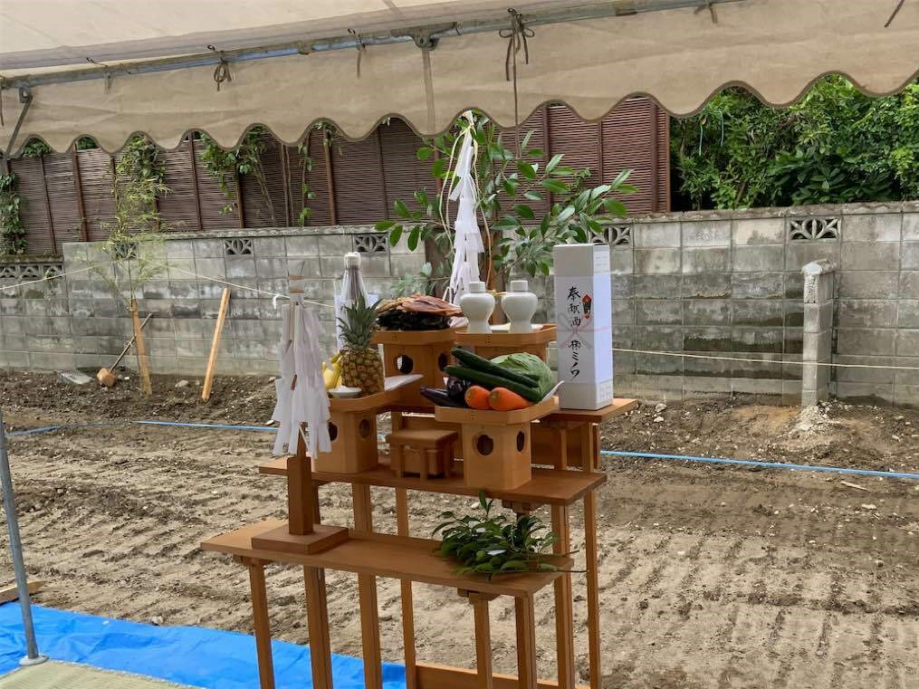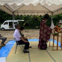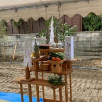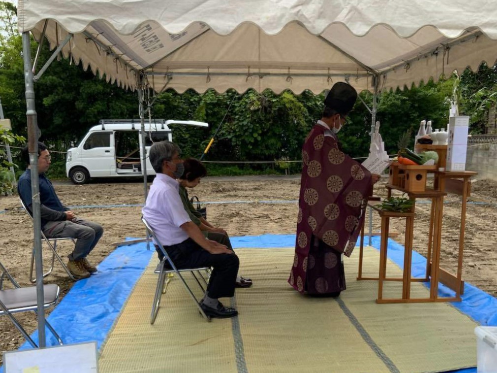 解体工事が完了し、25日に地鎮祭を行いました。梅雨に入りお天気が心配でしたが、無事に行う事ができました。工事も最後まで無事に完成しますように。よろしくお願いいたします。