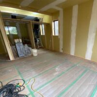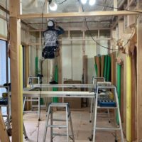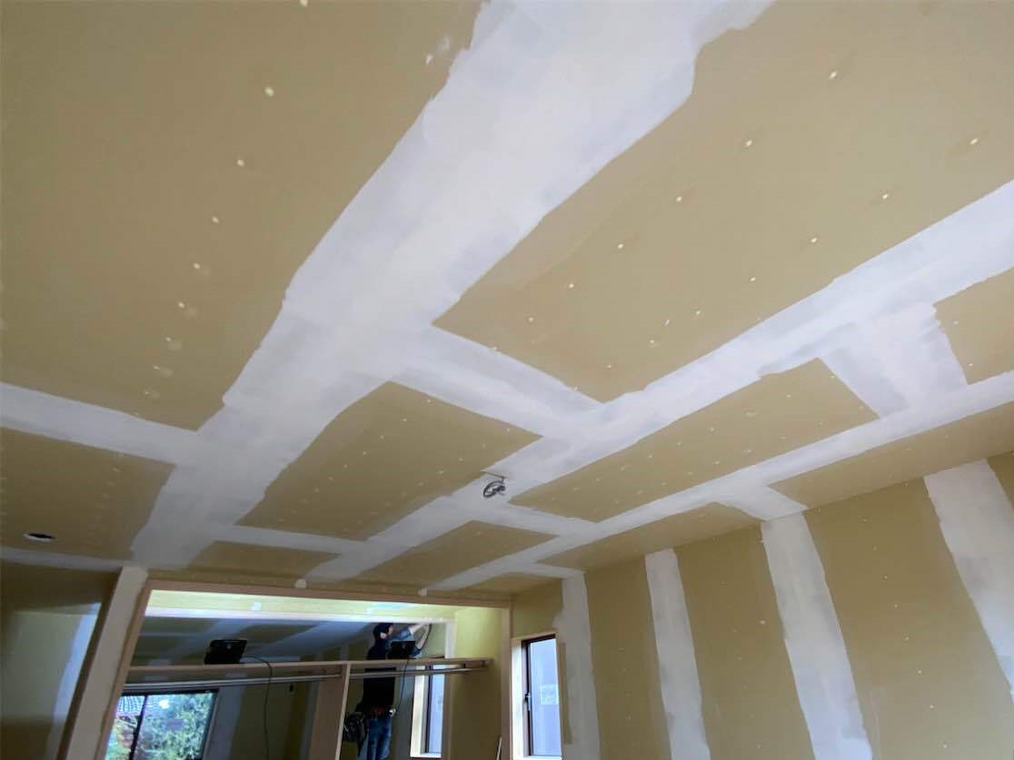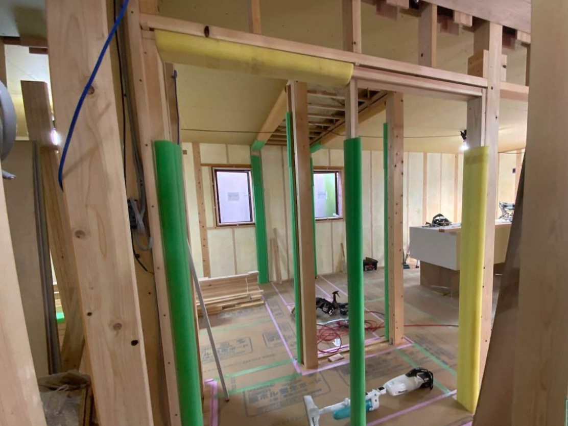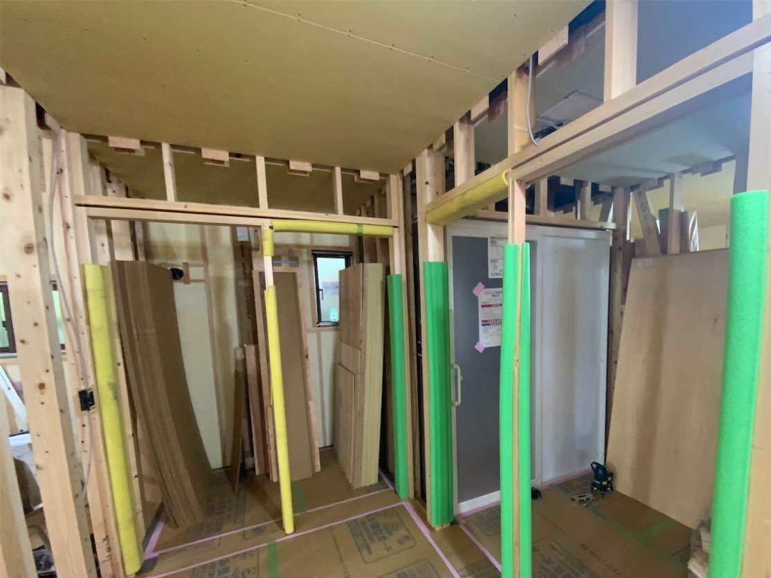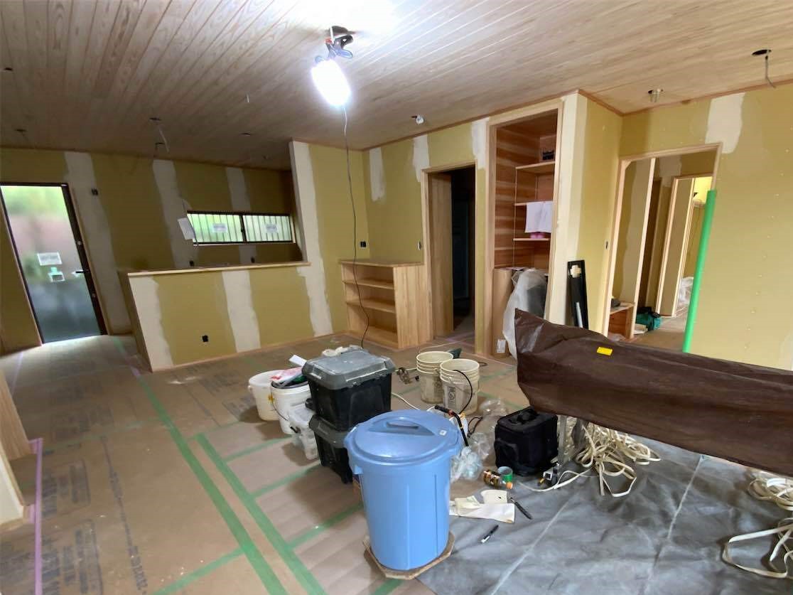 今週からいよいよ、仕上げ工事に着手していきます。養生やプラスターボードの色が、まだまだな感じを醸し出しますが、実はここから完成までは結構早いです。現場の雰囲気がどんどん変わっていきます。