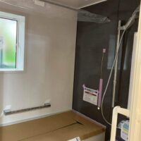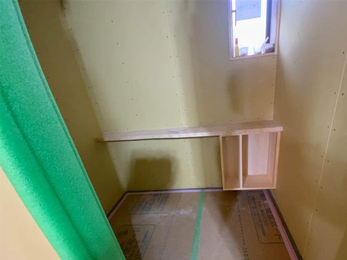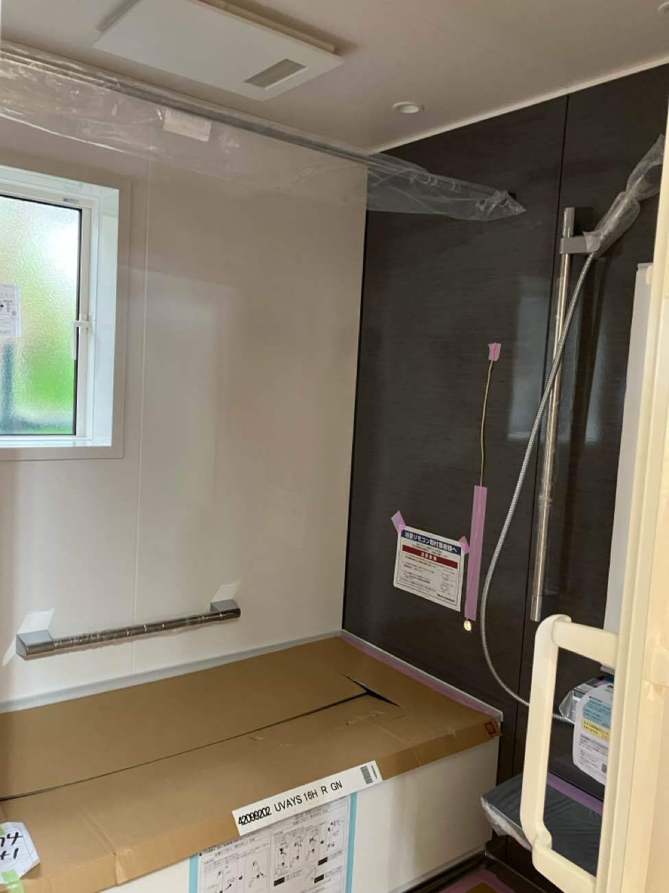 ユニットバスが取り付けられているよ~とご主人に案内していただき、写真を撮りました📸ユニットバスは設備の中で一番早く取り付けられ、組み立てたら完成なので見るのが楽しいですよね。
