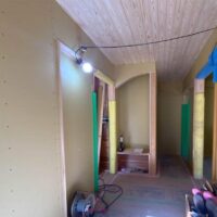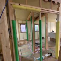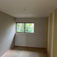床を張り終えて、出入口の枠を取り付けています。ミノワでは製作建具(建具屋さんが建具を造る)事が多いので、枠は大工さんが加工して取り付けます。枠には基本的に塗装はかけないのですが、あまりのきれいさにプロが見ても既製品?と勘違いされるほど。(あ!また大工自慢をしてしまいました💦)私達も、大工さん達の仕事に恥じない仕事をしなければと日々思います。