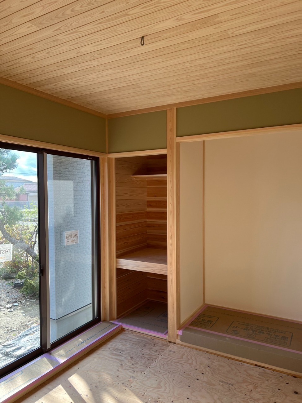 i様邸も、木工事(大工工事)の終わりが近づいてきました。年末にはお引越しされたい!と言うご希望をお聞きしながらも、12月21日、22日に完成見学会を開催させていただける事になりました。i様ありがとうございます。注文住宅なので、お客様によっていろんなアイディアやこだわりがあり、ご来場される方に参考にしていただける事と思います。また、最近グッと寒くなったので、見学会のころにはもっと寒くなっているはず。画像ではわからない、暖かさや木の香りなど、体感していただけるのではないかなぁと思います。