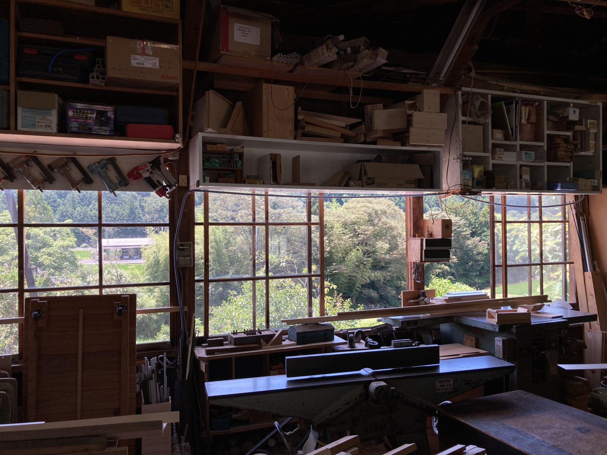 f二木工所の工場はミノワ本社と目と鼻の先、加茂郡白川町にあります。工場の窓からは谷の絶景が一望できるロケーション。と言ってもこの地域はどこにいても絶景が見張らせるのですが・・。