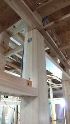 前回ご紹介しました、光り付けの作業と同時に行われる「力貫(ちからぬき)」のボルトが見えています。