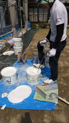 下塗りは、直射日光が当たったり直接風が当たると急激に水分が蒸発し、ドライアウト(硬化不良)が起こります。それにより強度がなくなり、仕上げをした後剥離の原因になります。