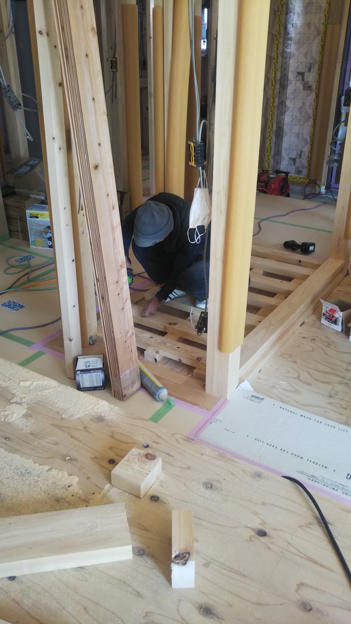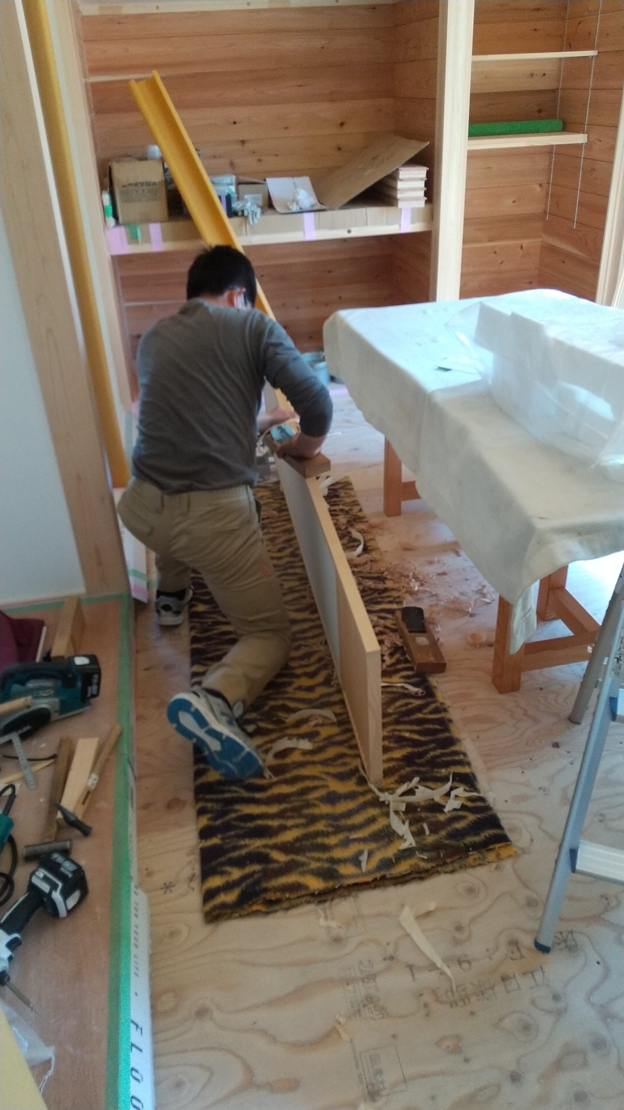 巾木を切る度に、ひのきのいい香りが現場内に立ち込めていました。
