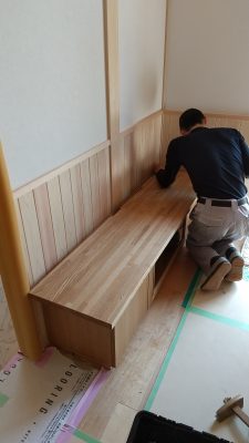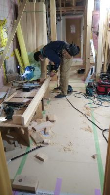 仏間をかさ上げするため、根太を組んでいます。
