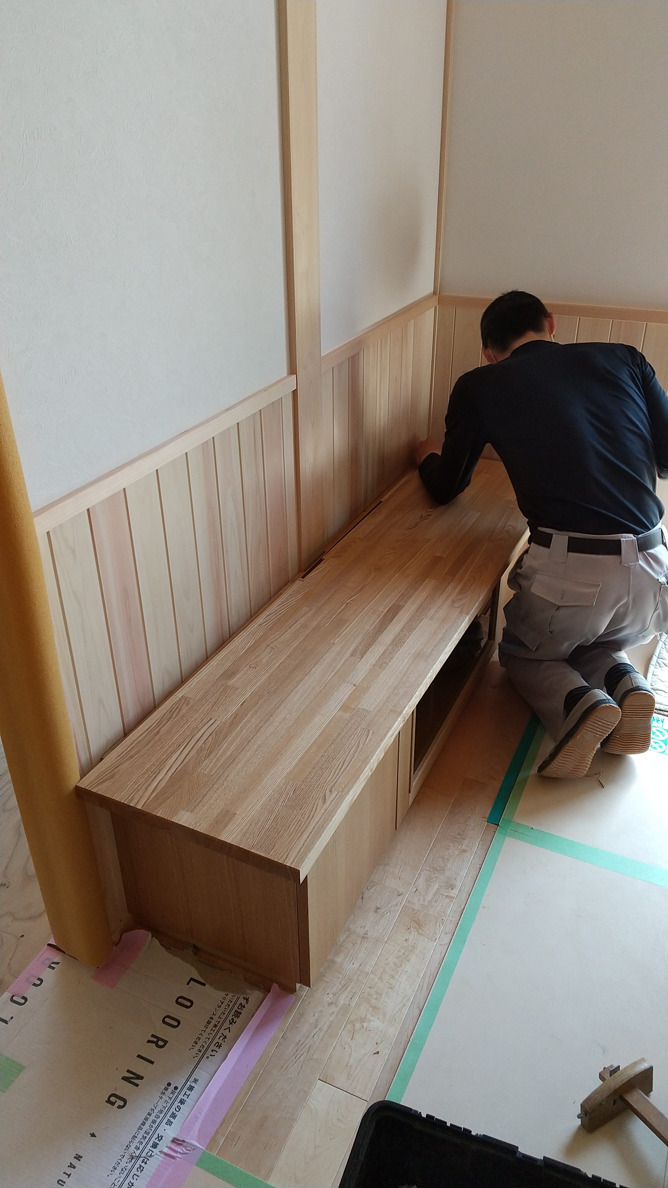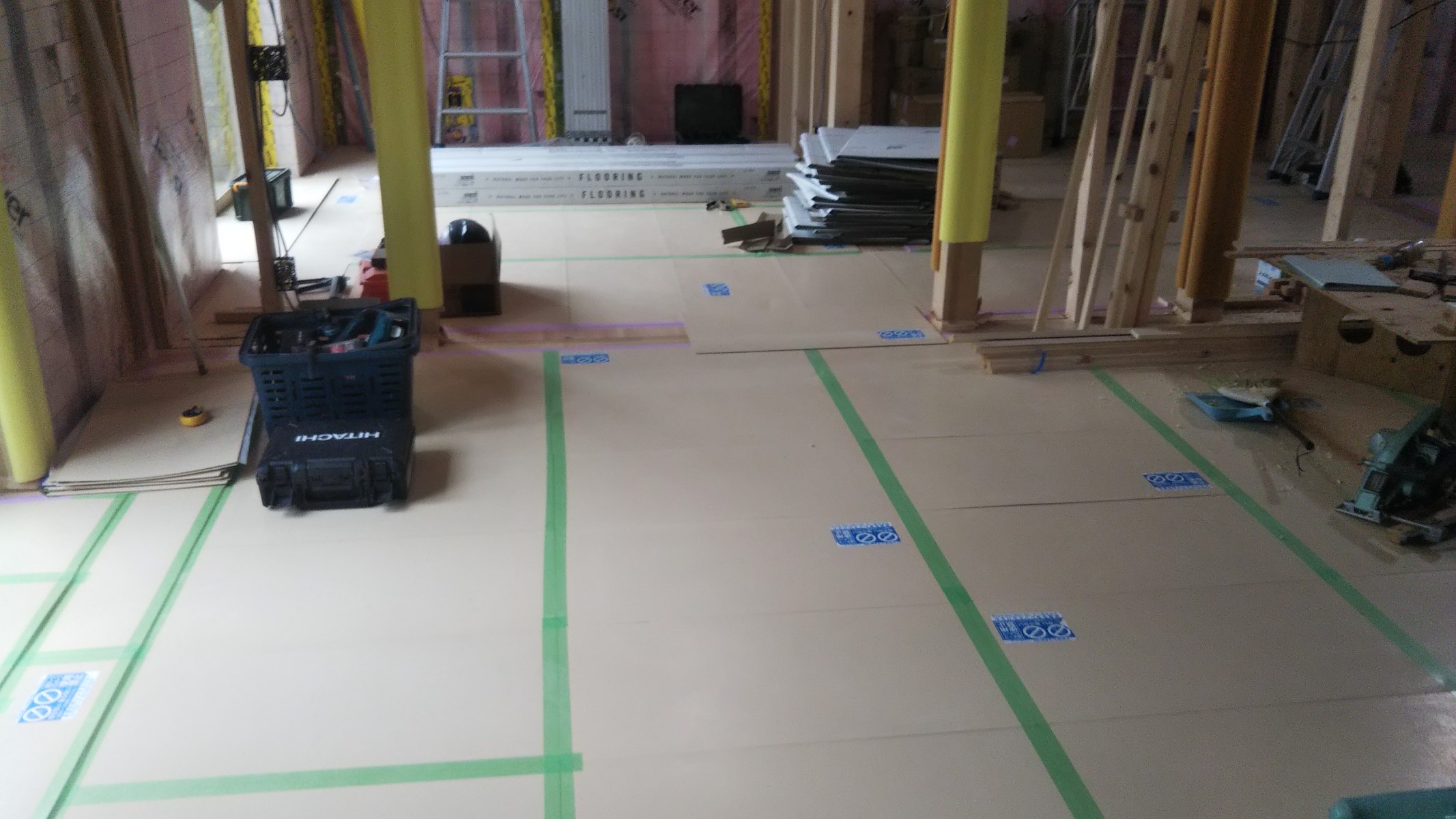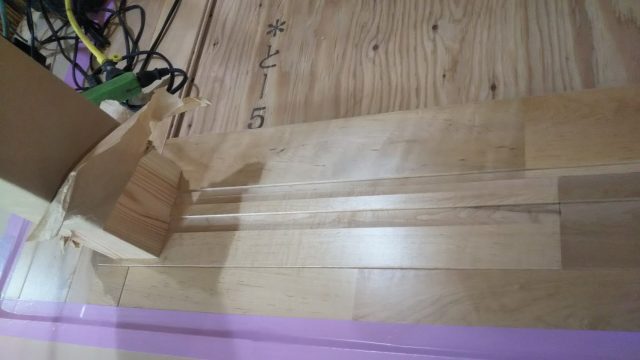 フローリングが張られた床に傷がつかないよう随時養生していきます。