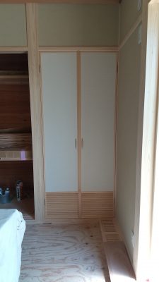 今回は和室のため、戸襖方式で作られています。把手の色合いもいい感じです。