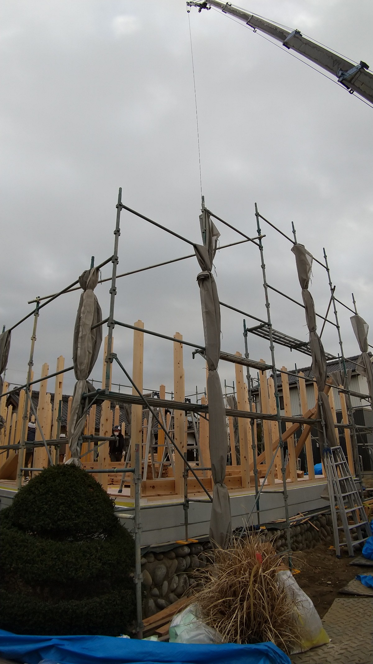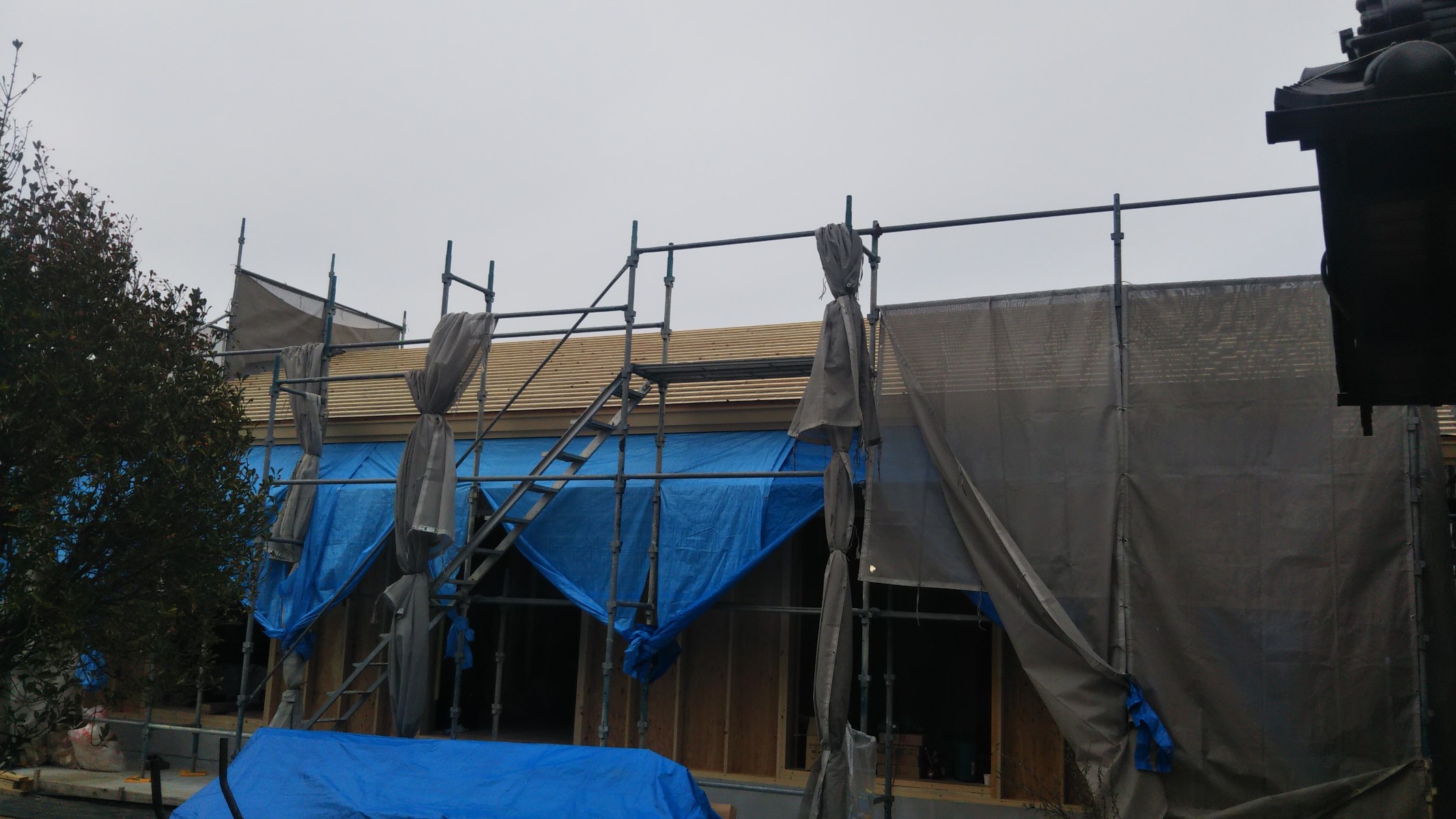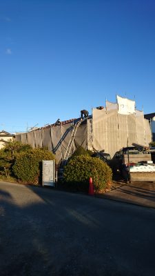 建前まではブルーシートをかけて、雨や汚れを防ぎます。
