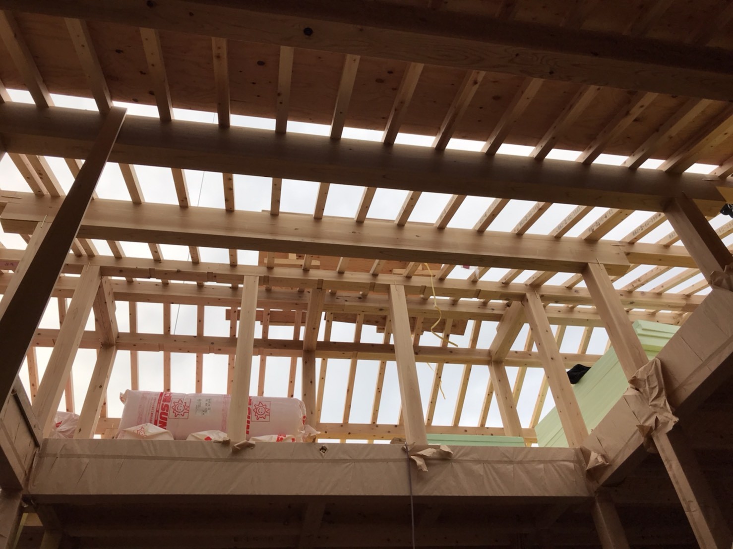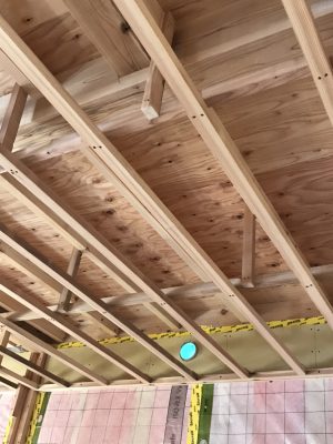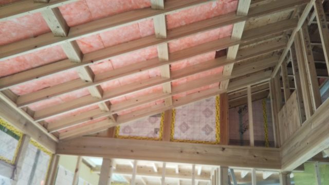 平天井部分にはt=310㎜程高性能グラスウールが敷き詰められています。
