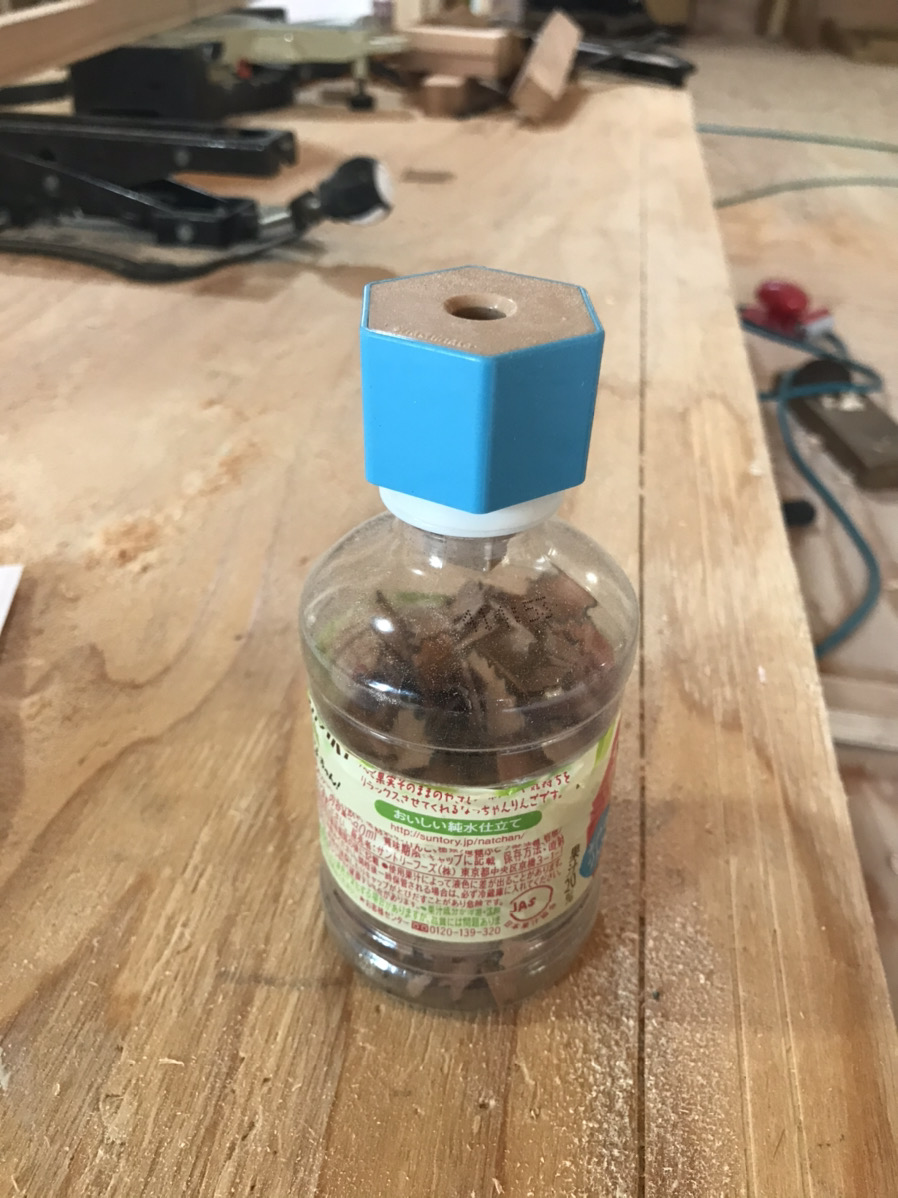 ペットボトルに削りカスをためる便利な鉛筆削りを使っています。