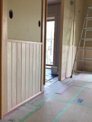 リビングには腰板が張られています。