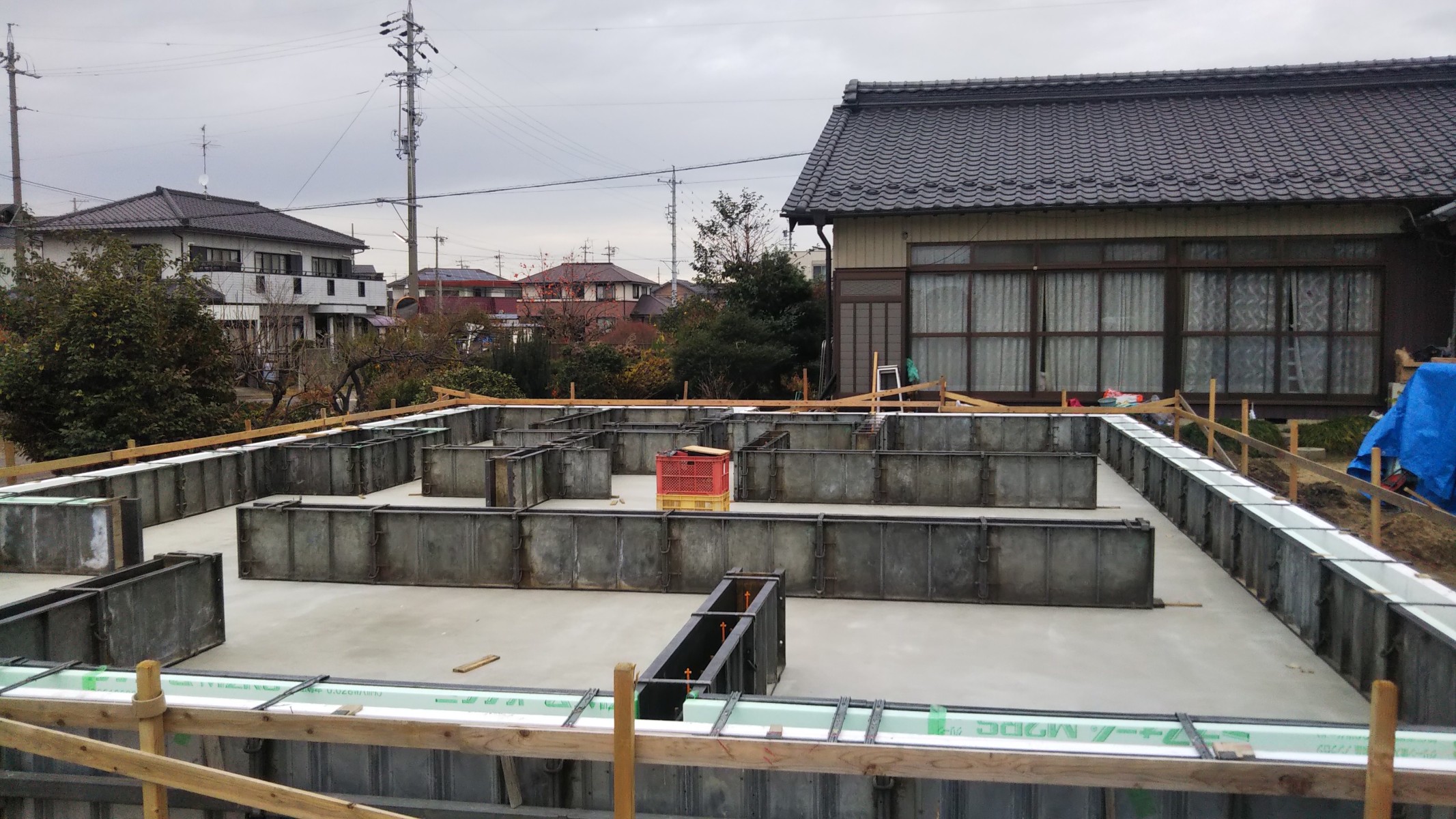 これから断熱外周部にメッシュ→モルタル施工をしていきます。