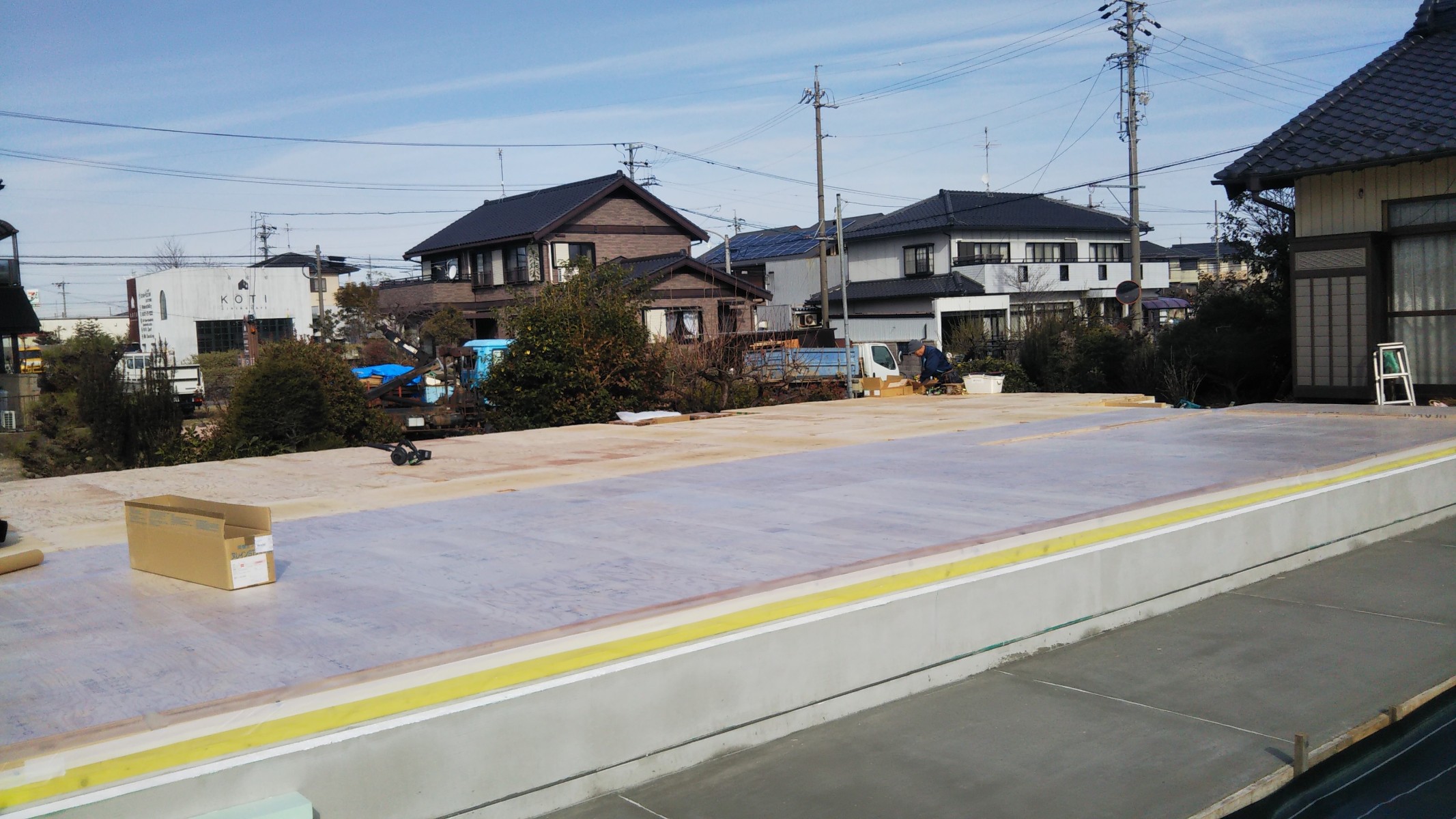 平屋ですが屋根面積が大きい分、施工時間もかかります。