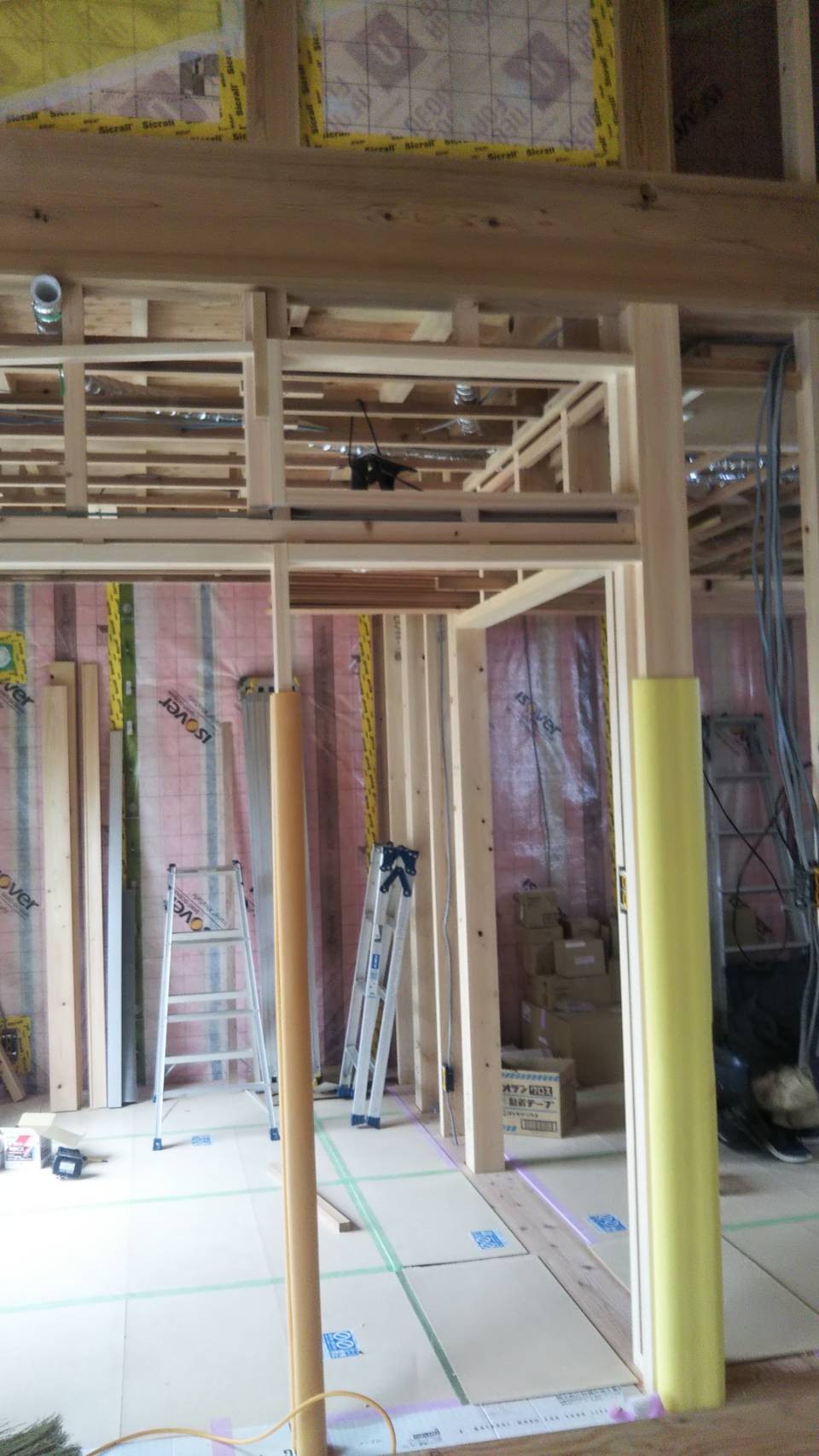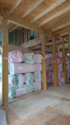 壁用の断熱も搬入され山積みになっています。