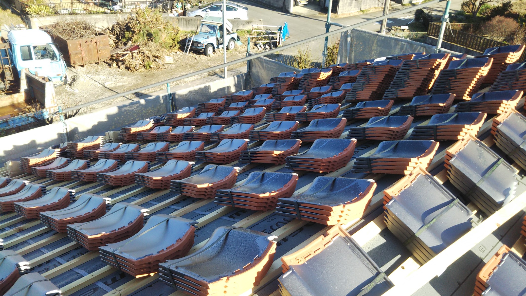 瓦が搬入されました。