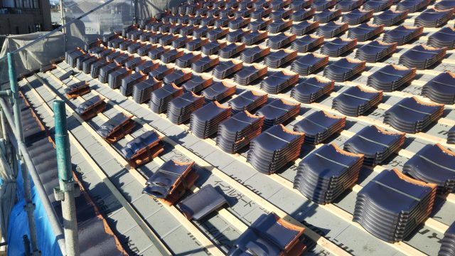 瓦葺き工事風景です。