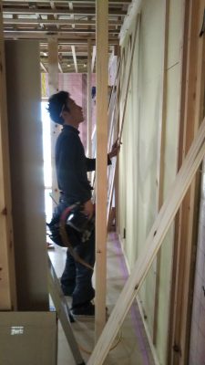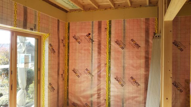 真壁部分の断熱施工状況です。