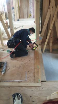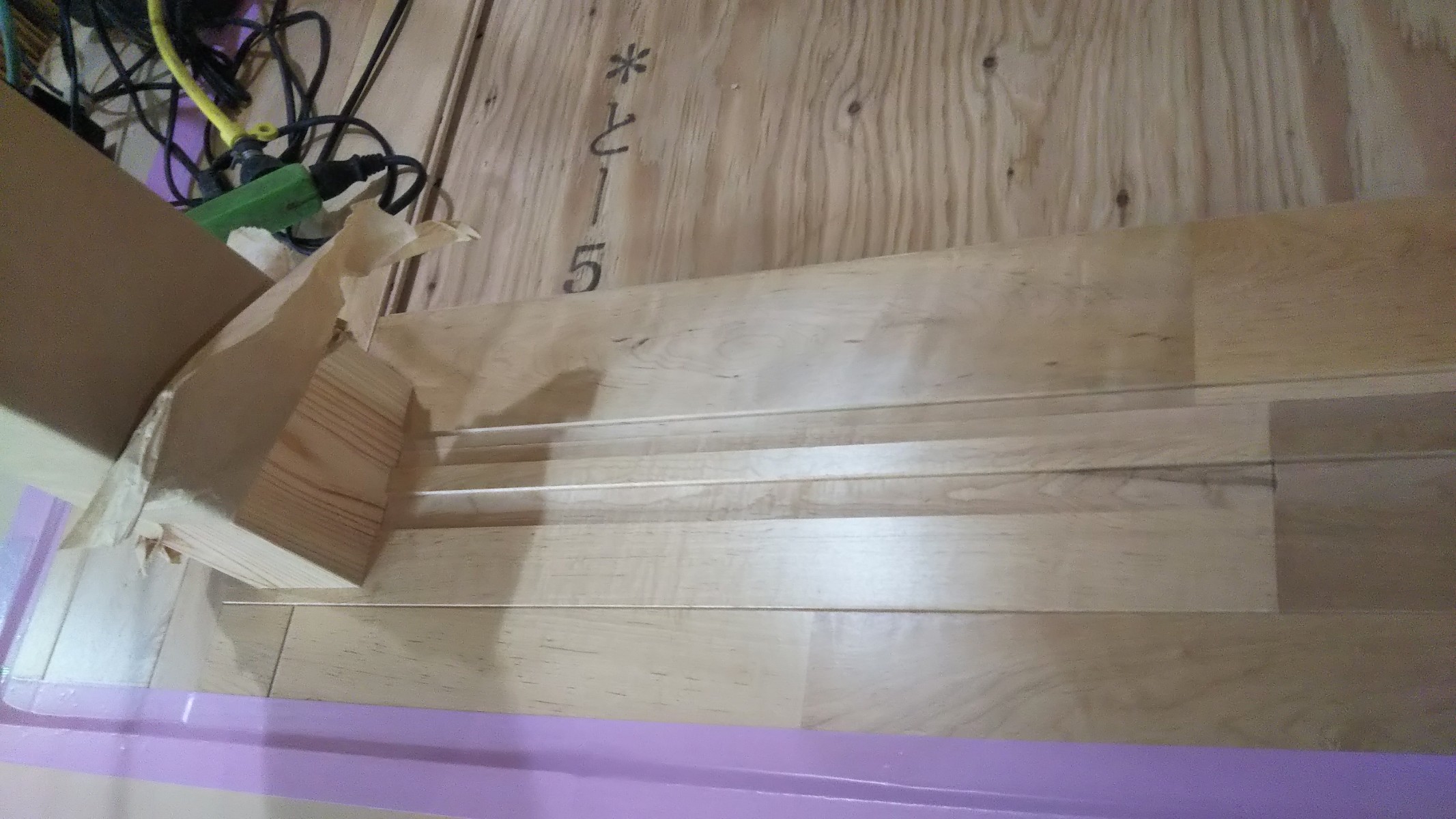 勝手口のフローリングを張っていきます。