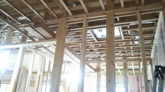 天井下地施工状況です。この後プラスターボードが張られます。