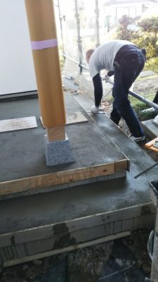 玄関の仕上げは御影石ですが、その前にモルタルで下地処理です。