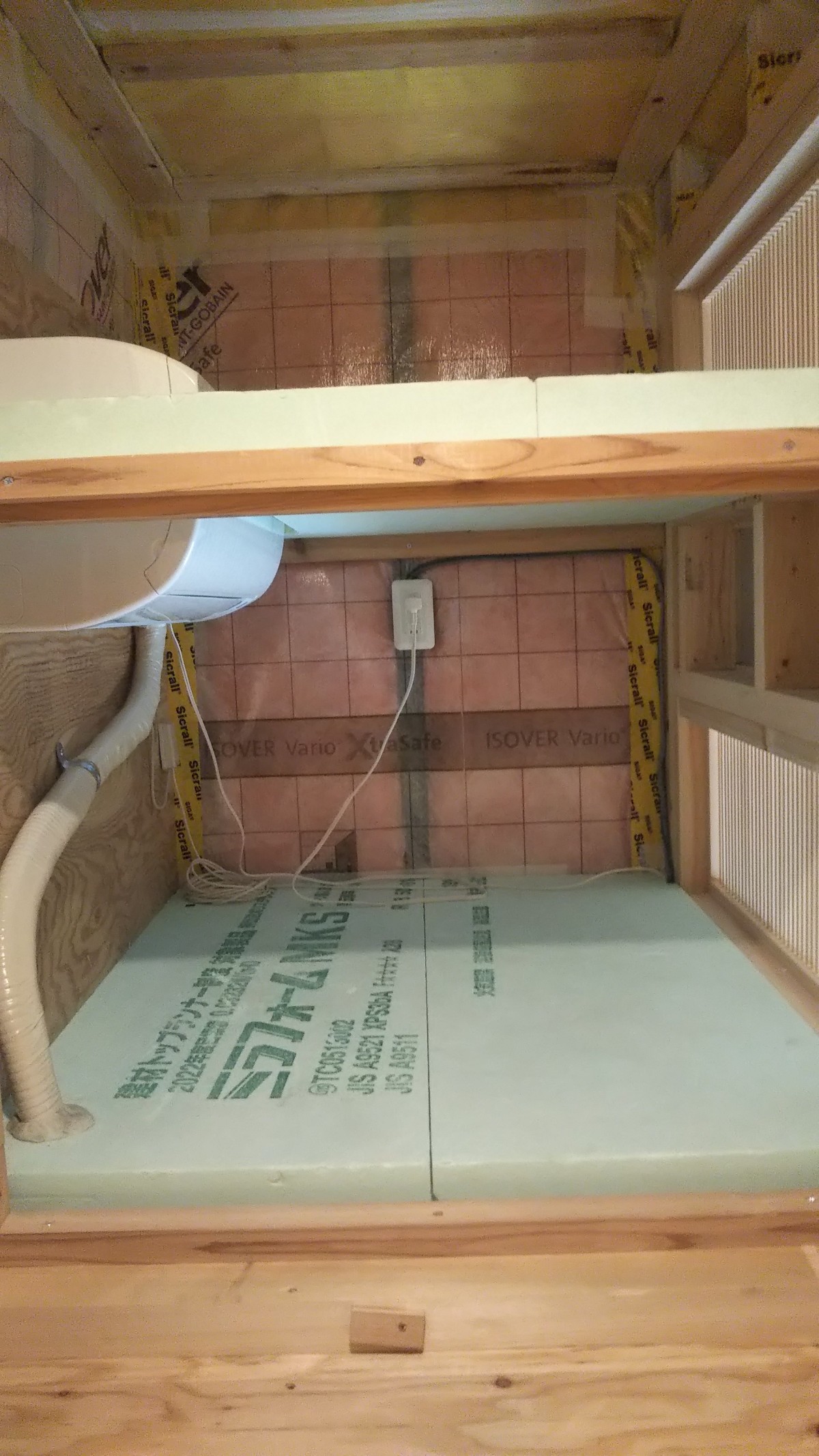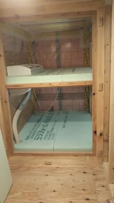 小屋裏内の通路側も遮断し、エアコンの小さな部屋を作りました。