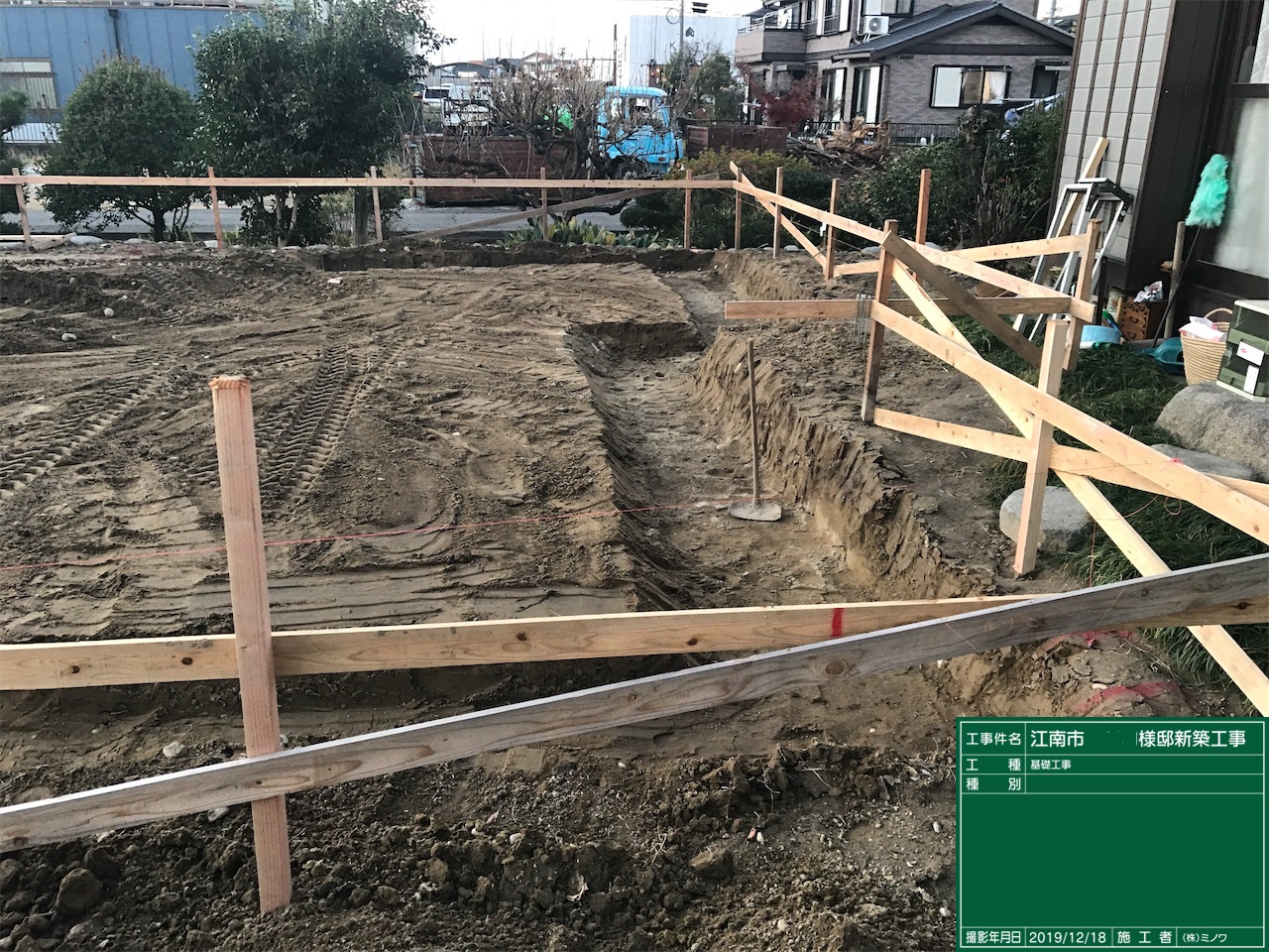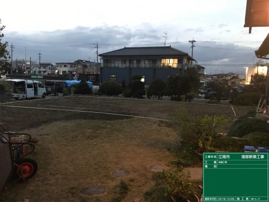 丁張り完了。基礎の通り心を出すのに使用します。