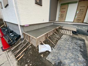 幅の広いウッドデッキの下は草むしりが大変です。潜らなくても良いように、ウッドデッキ下は予め土間コン施工がされています。