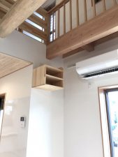 2階からの画像は吹抜け部分の手摺を利用した本棚です。今は3段ですが、この間に可動棚が1段ずつ設置されるので、単行本サイズの本6段分収納可能です。