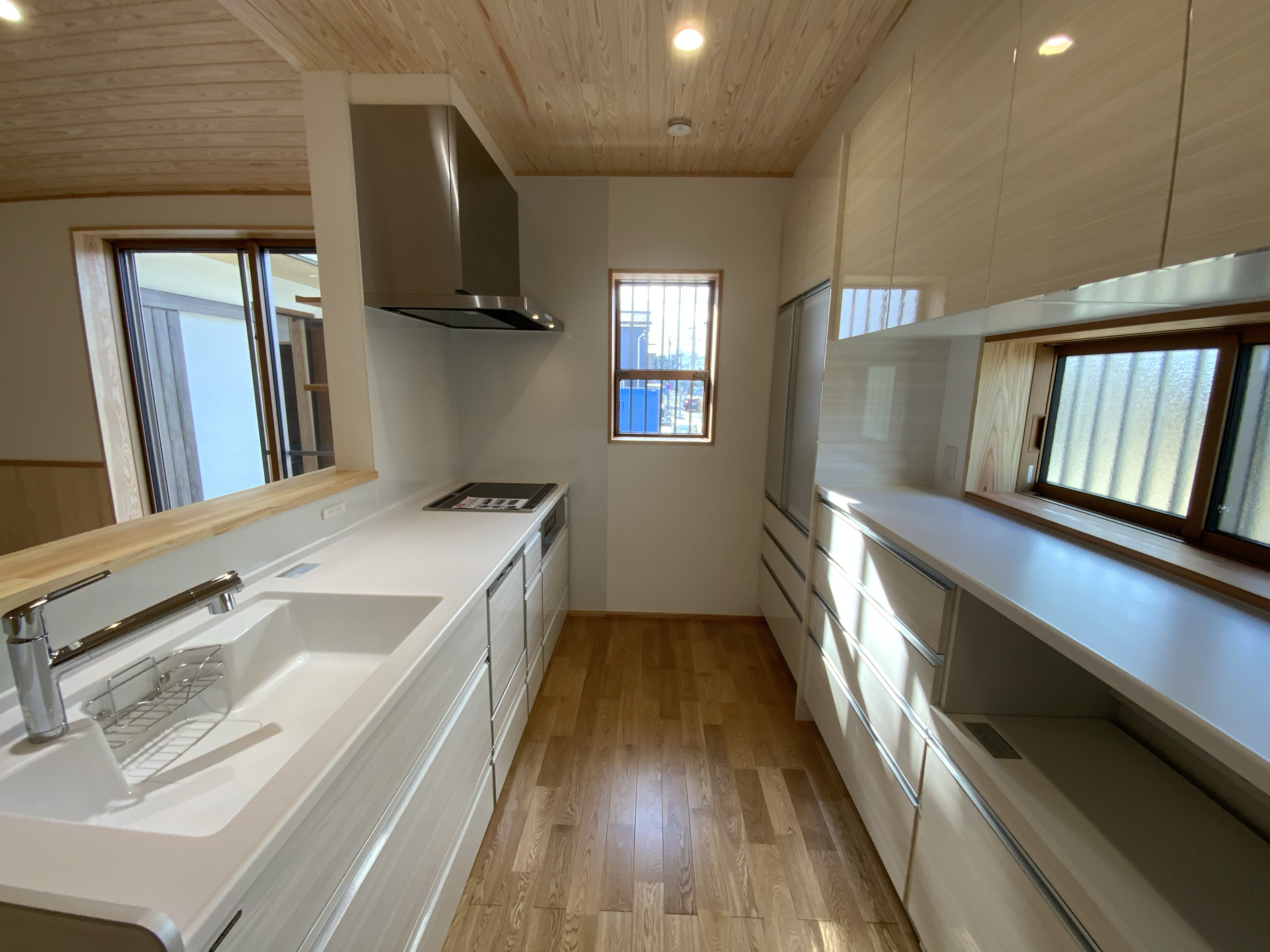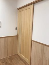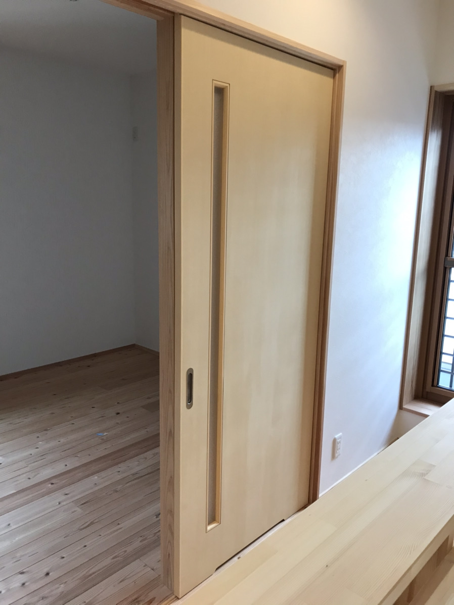 框戸はヒバ材、3枚目の画像は米ヒバ材です。ご両親世帯の建具には開けやすそうな取っ手が付いていました。
