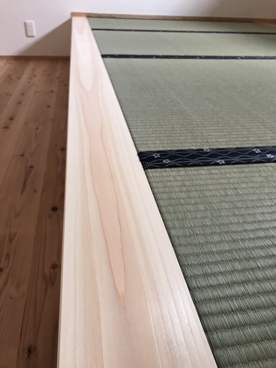 床から40センチほど上がっている部分はタタミコーナーです。下に収納があり、段差に座ってくつろぐことができます。