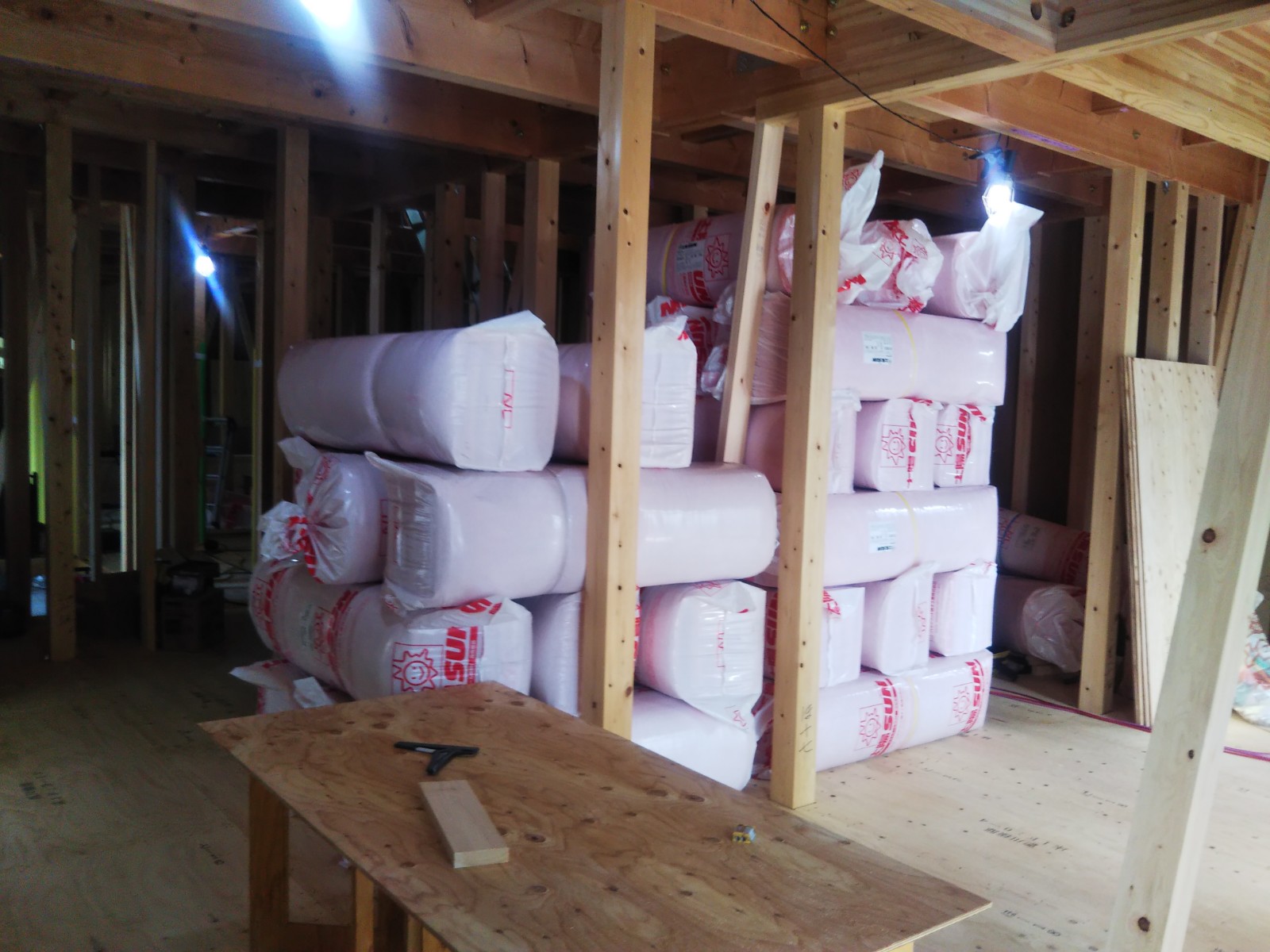 壁用の断熱材(高性能グラスウール)が搬入されました。