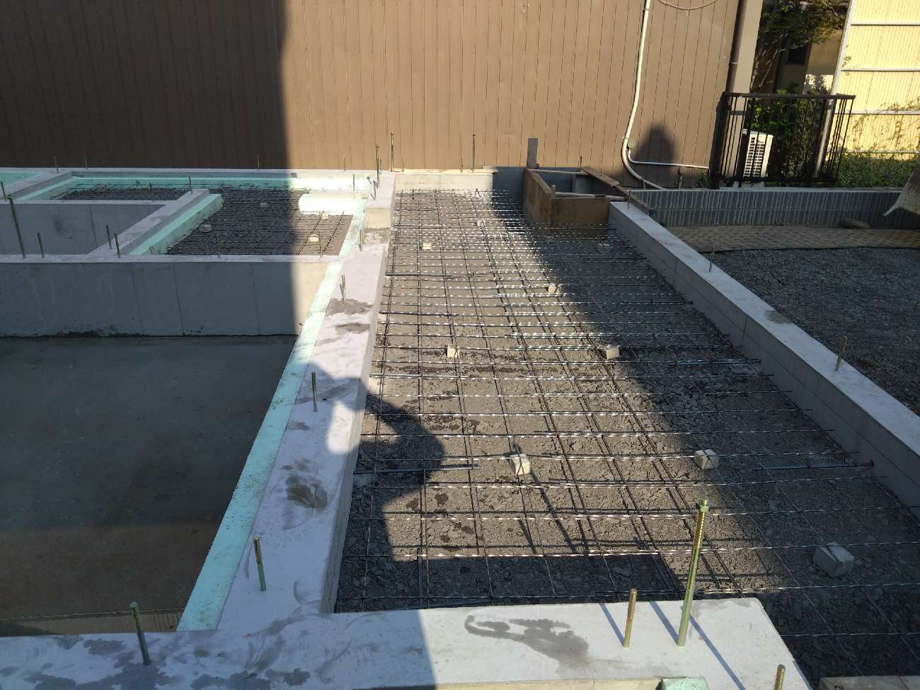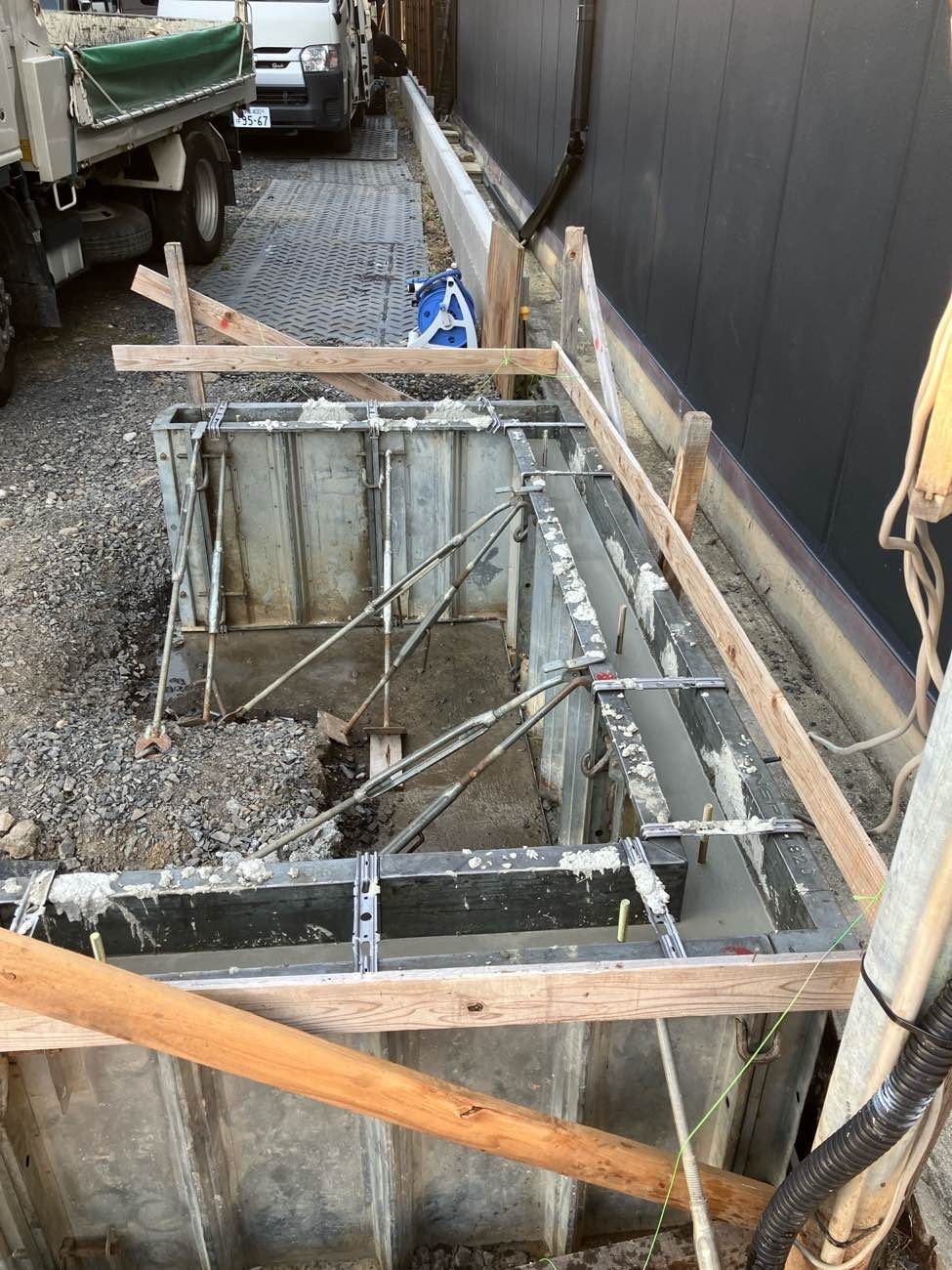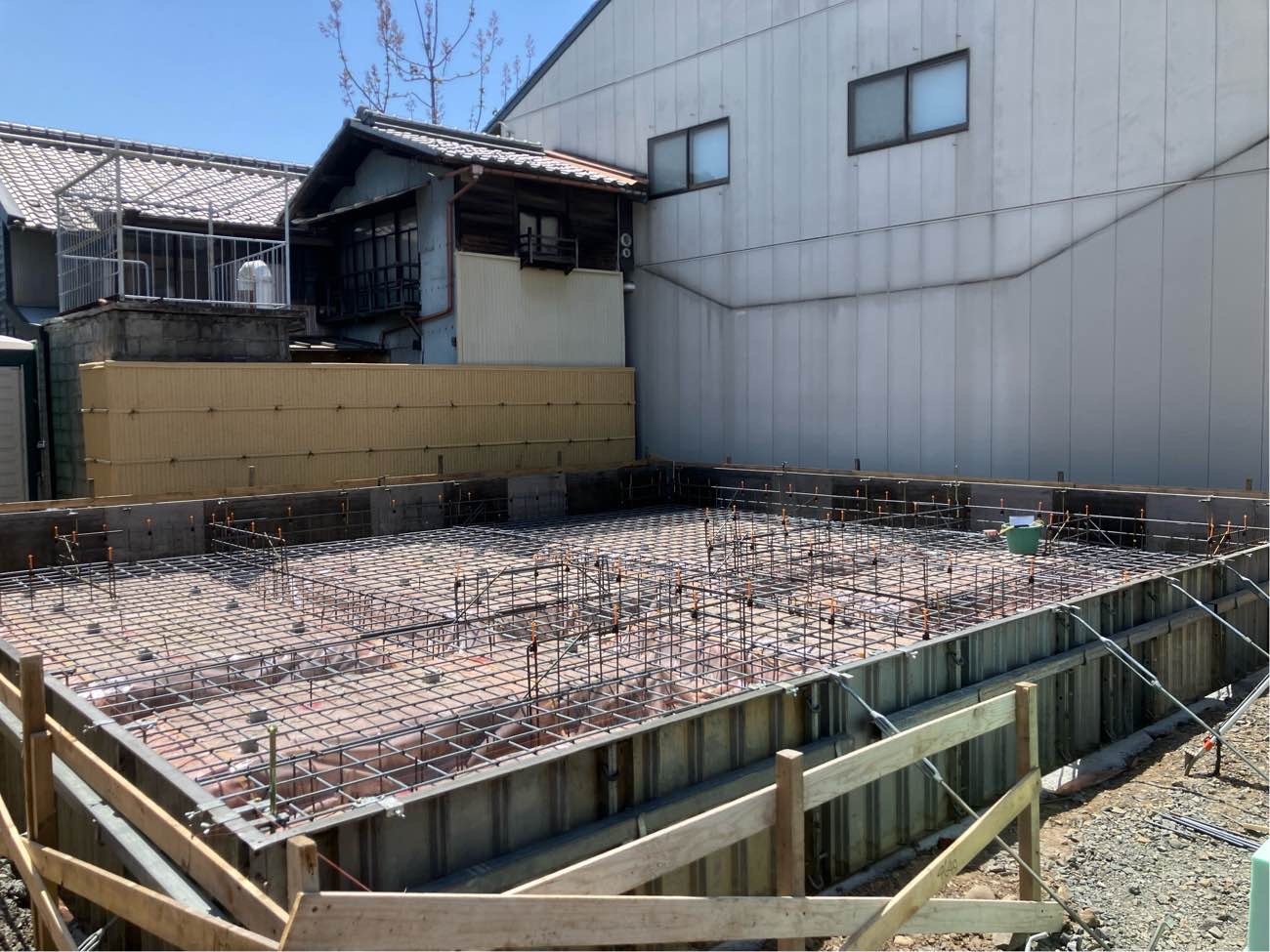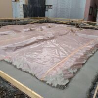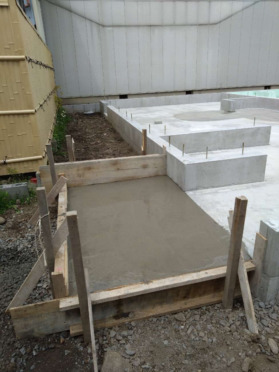 底盤のコンクリートを打設、立ち上がり部分の型枠を組み打設まで終えています。明日は、現地でo様手配の外構屋さんと打合せです。囲われた広い敷地の為、雨水排水の計画を水道屋さんも含めて現地で行う予定です。